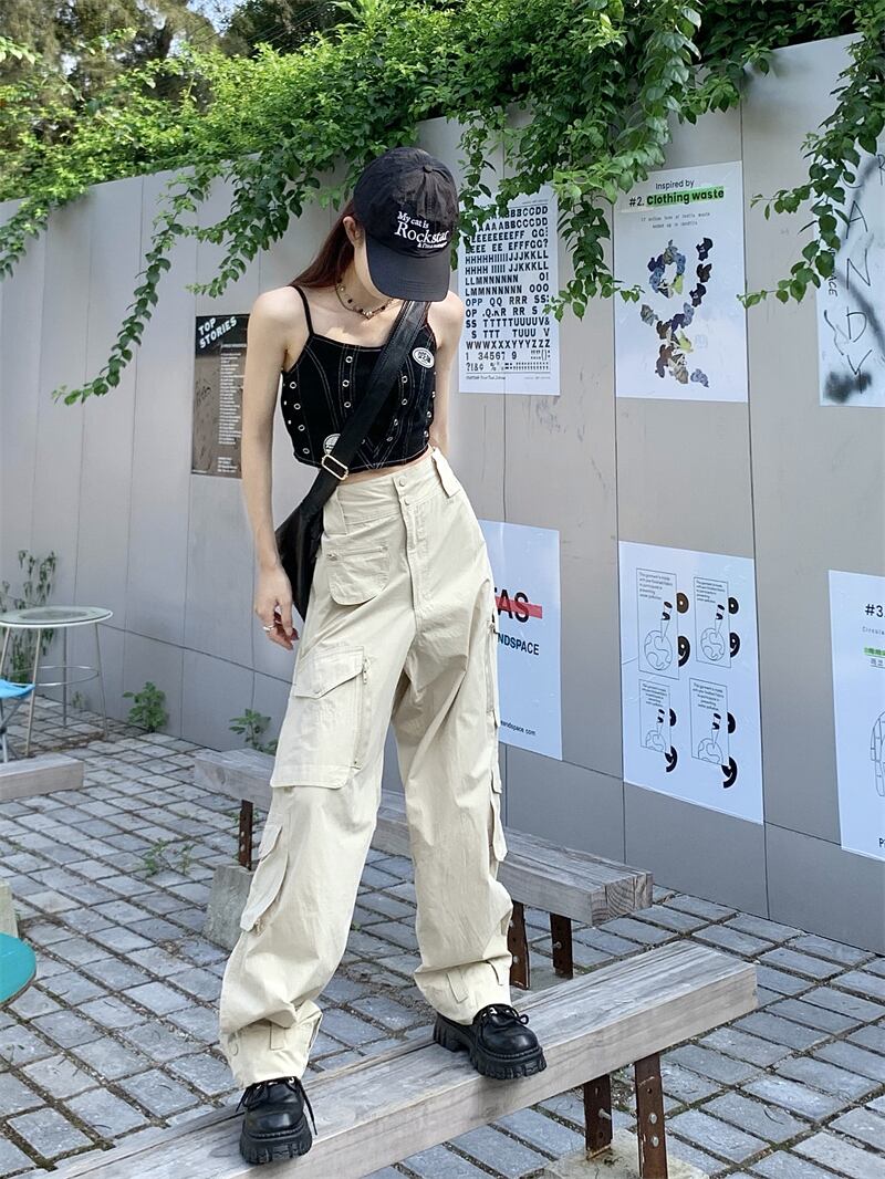 スタンダードオーバーオール サマーハイウェストウェスト薄手ルーズカジュアルパンツ レトロ 夏物 s576130790874175
