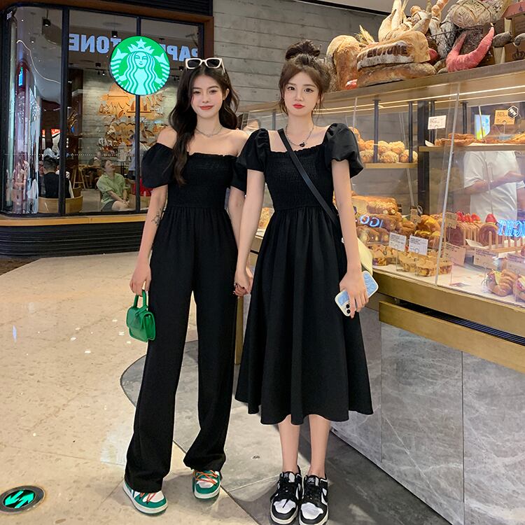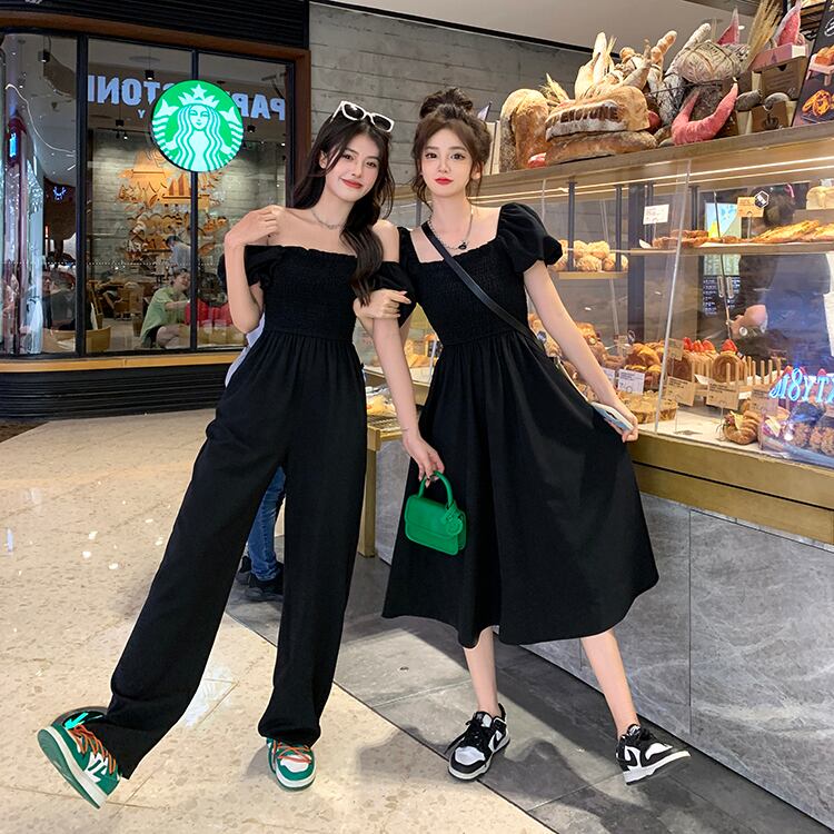 ドレス ブラックスリーブサマースタイルウェストロングスカート 大人ガーリー スウィート キュート カジュアル 夏物 s576152193197598