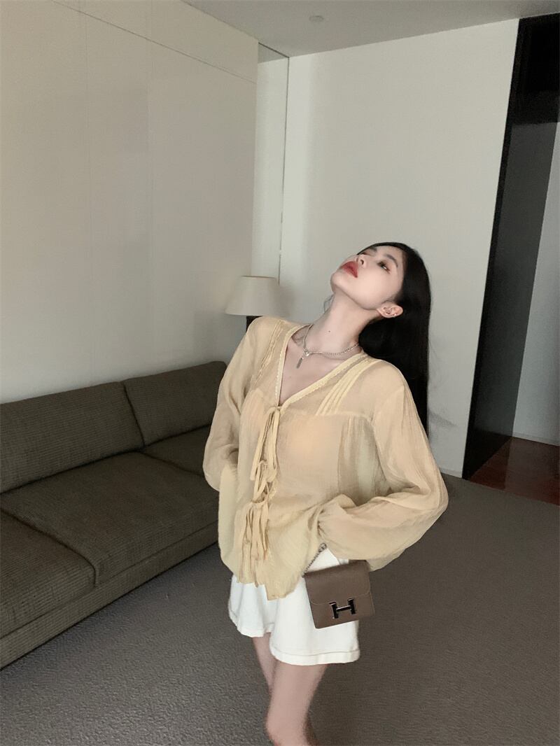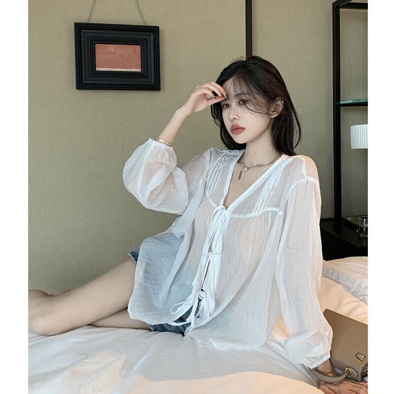 ホワイトシャツ ジャケット サマー薄手トップス ロング 夏物 s576198291501956