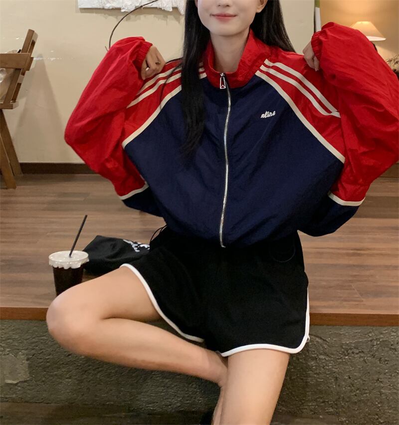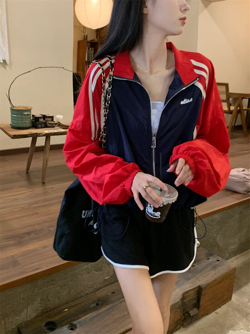 ジャケット サマー薄手レッドルーズトップス 夏物 s576189774637065
