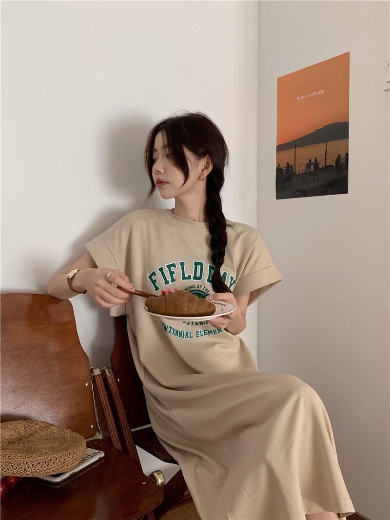 Tシャツ ドレス サマールーズカジュアルスリットスカート 夏物 s576140633756095