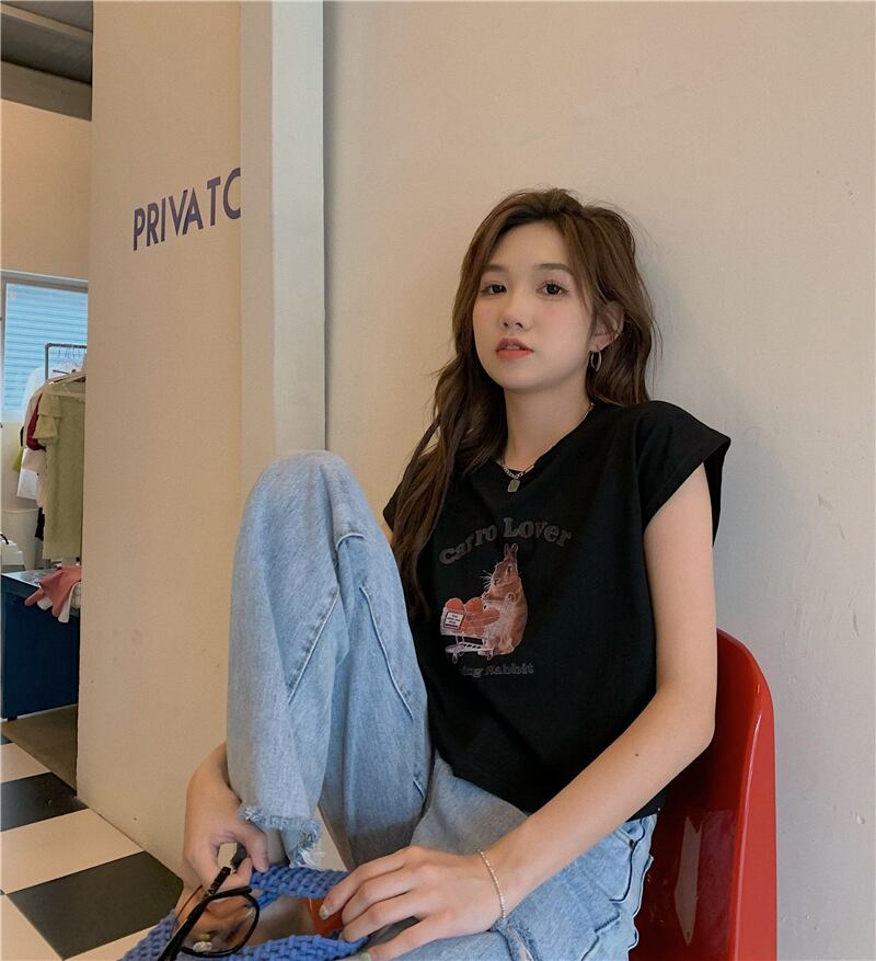 ホワイトノースリーブTシャツ サマースタイルショートトップス 夏物 s576174184103923