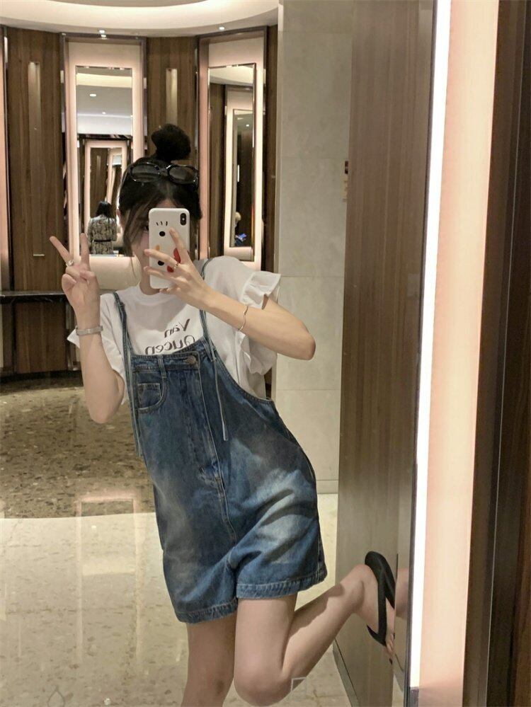 スタンダードオーバーオール サマーハイウェストパンツ ルーズワンピースショーツ レトロ 夏物 ブルマー s576179957054215