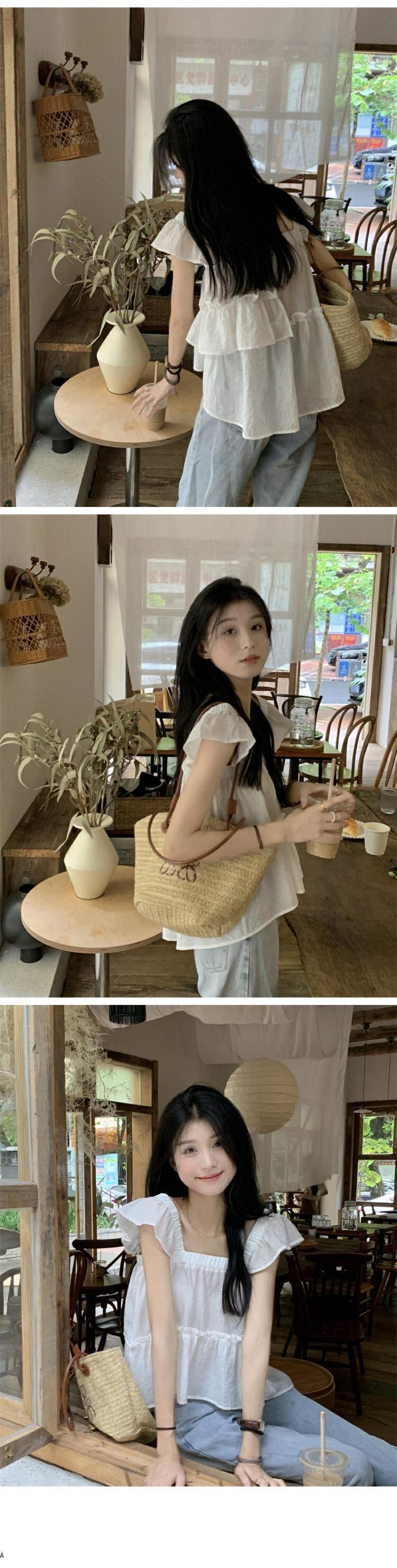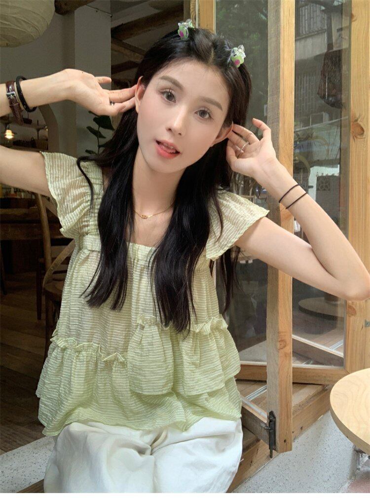 トップス サマースタイルスリーブシャツ 大人ガーリー スウィート キュート カジュアル 夏物 スクウェア s576176454163042