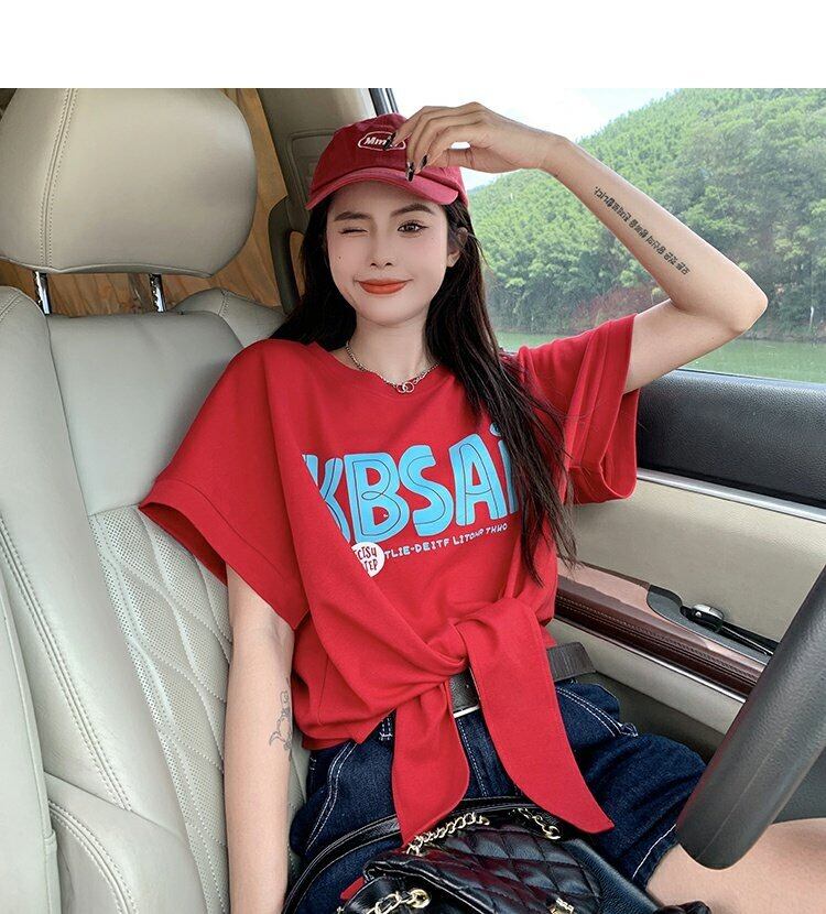 レッドTシャツ サマースタイルルーズトップス 夏物 s576192086527959