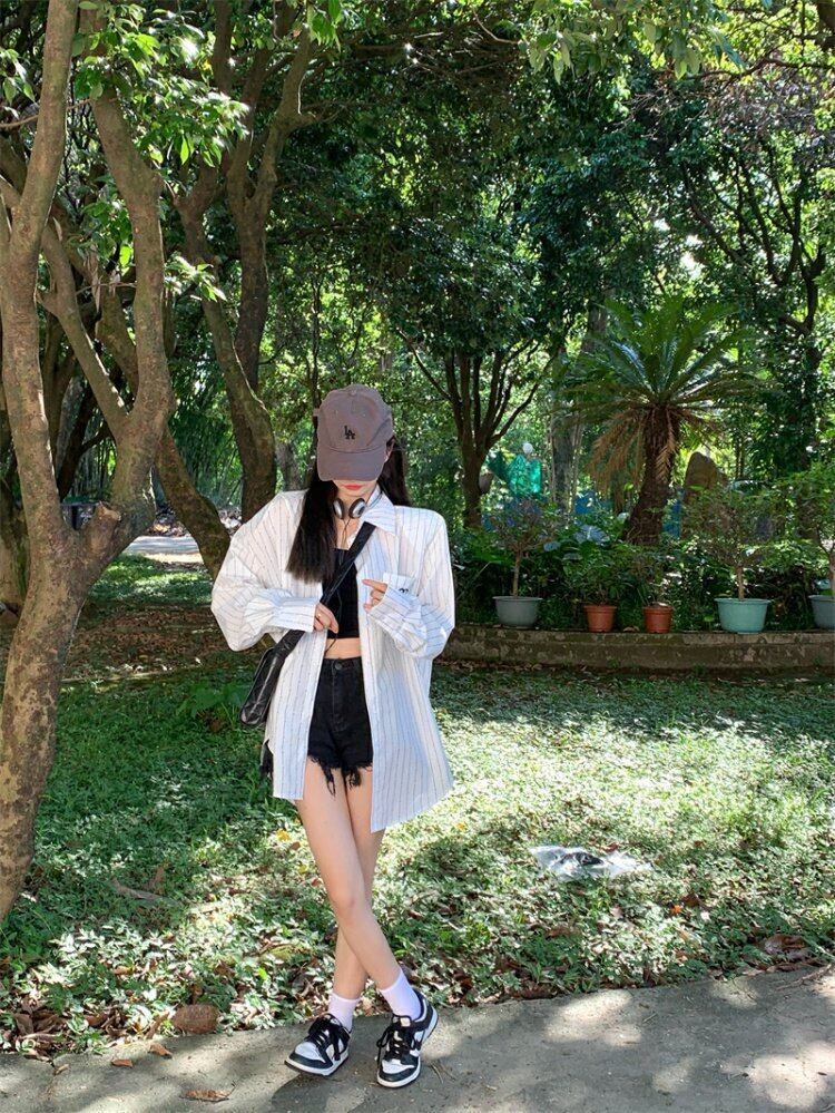 ストライプシャツ ジャケット サマー薄手ルーズスタイルトップス 夏物 s576120659639749