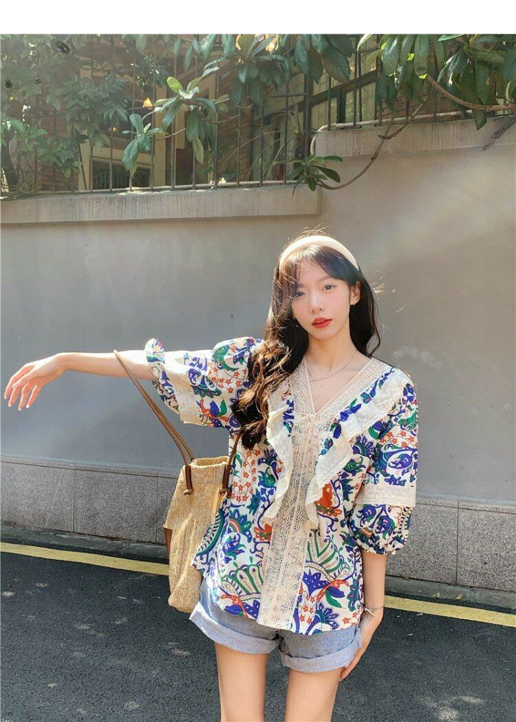 スリーブVネックトップス サマーシャツ 夏物 s576124540128252