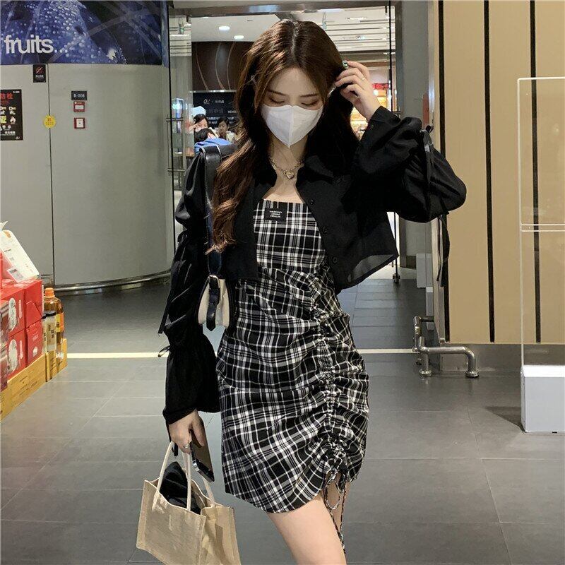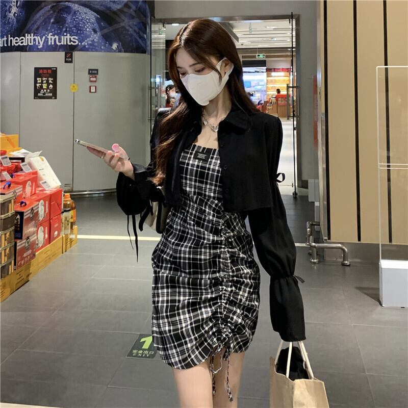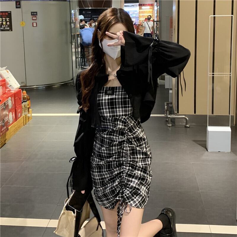 色:ブラックSunscreenShirt,チェックhalterスカート