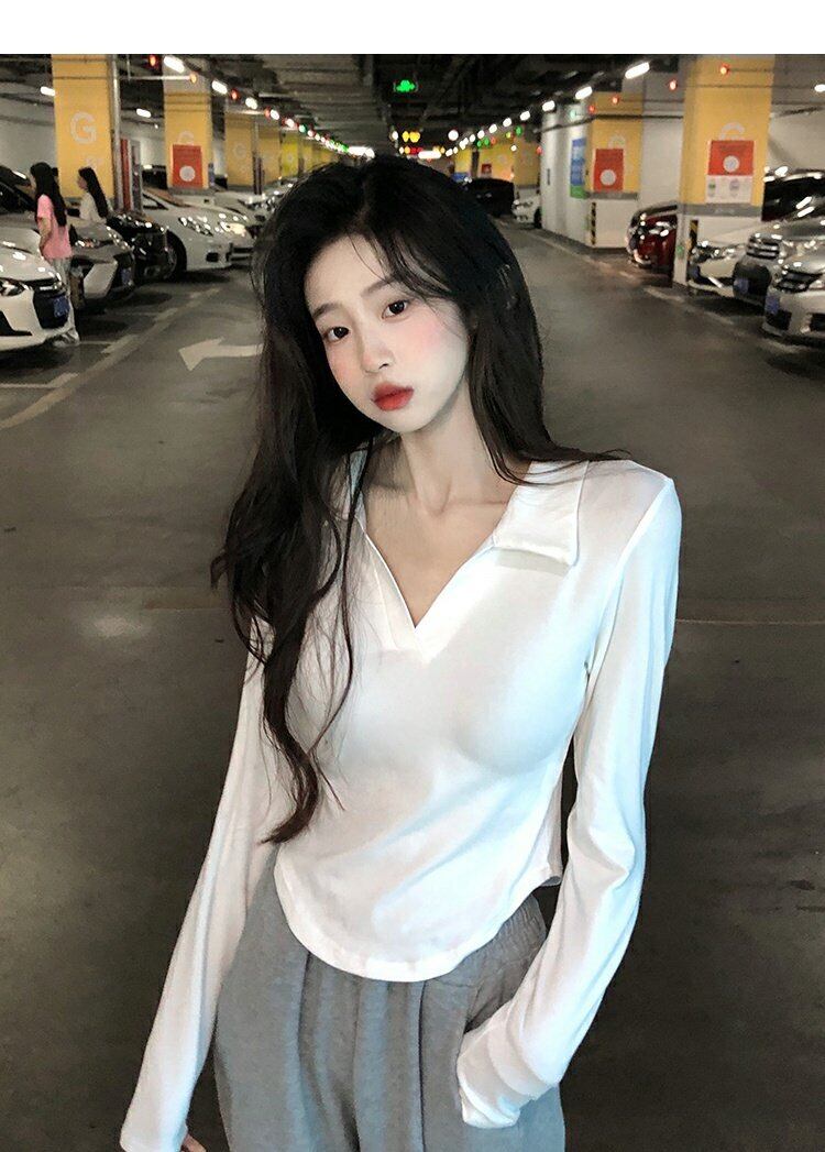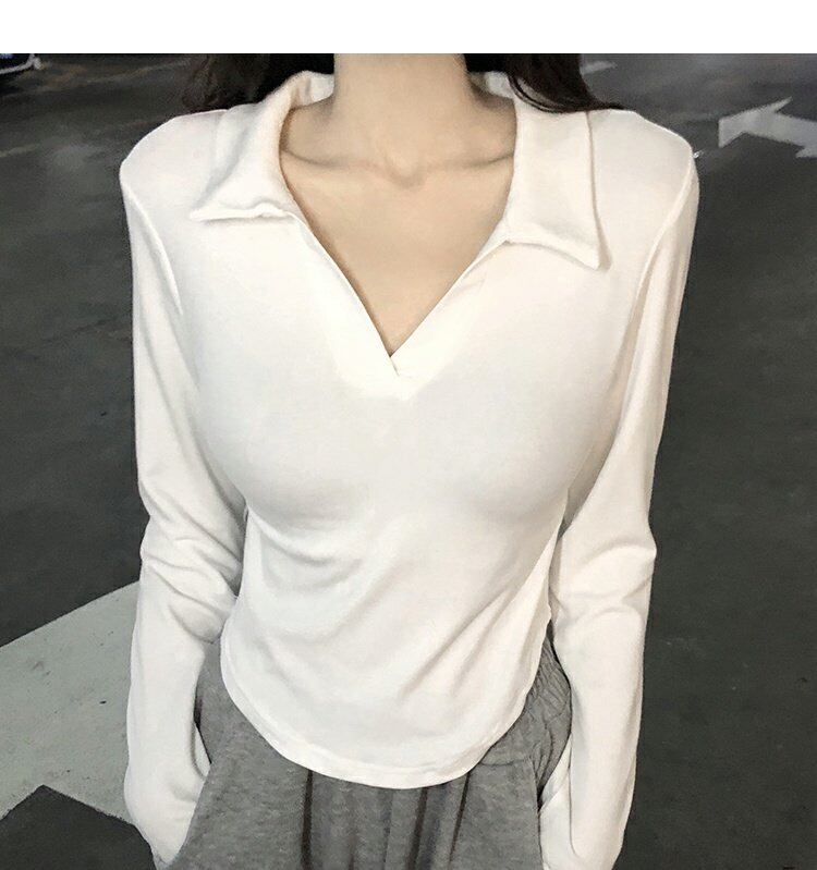 ホワイトカラーTシャツ スプリングオータムスタイルスリムトップス ロング 春物 秋物 s576129388446348