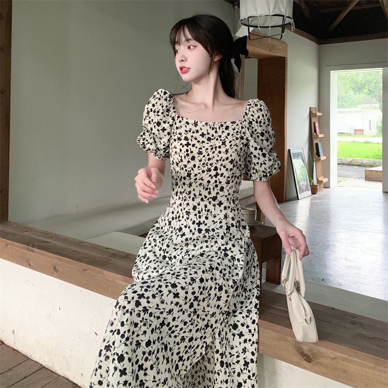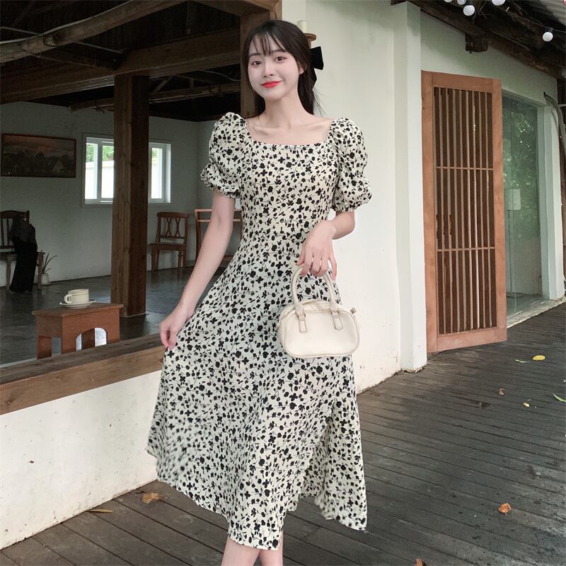 スタイルフローラルドレス サマーウェストスリットロングスカート 夏物 花柄 スクウェア s576199615925156