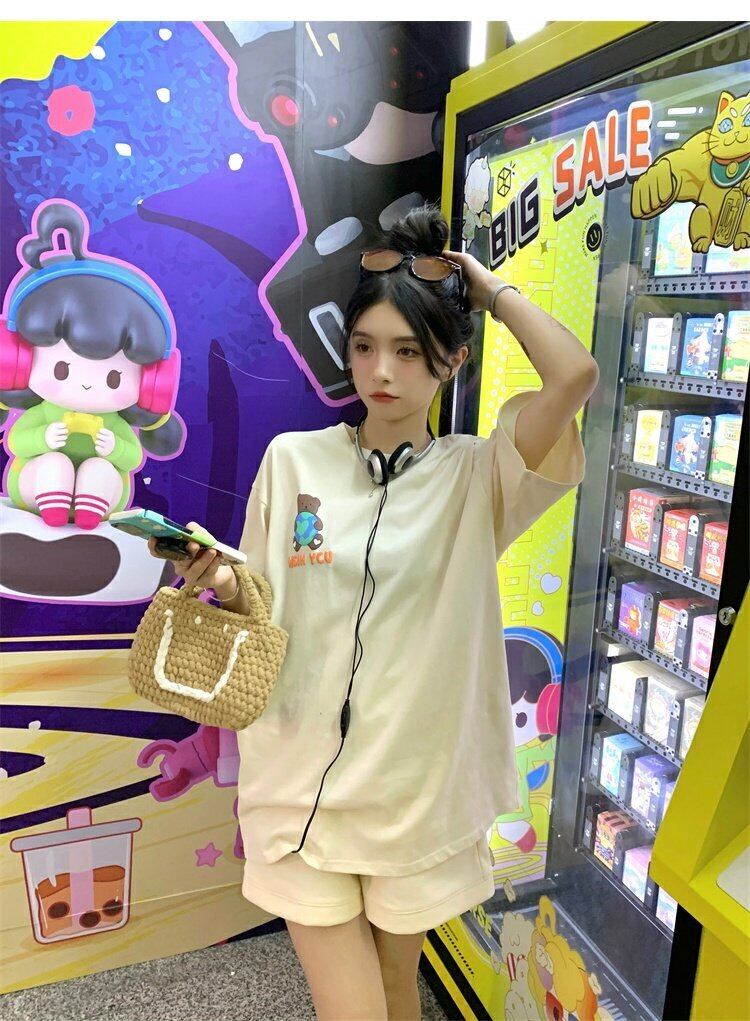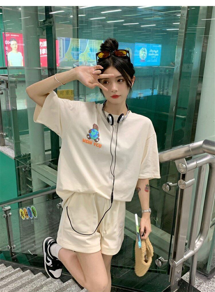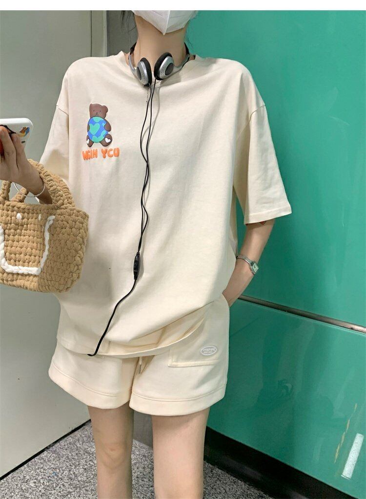 色:アプリコットT-Shirtトップ,アプリコットTerryShorts