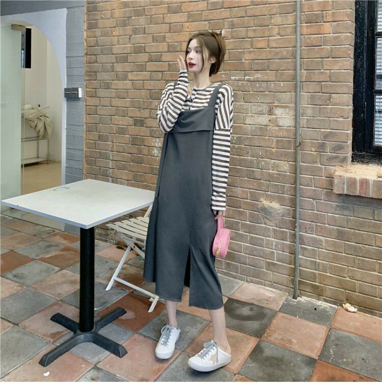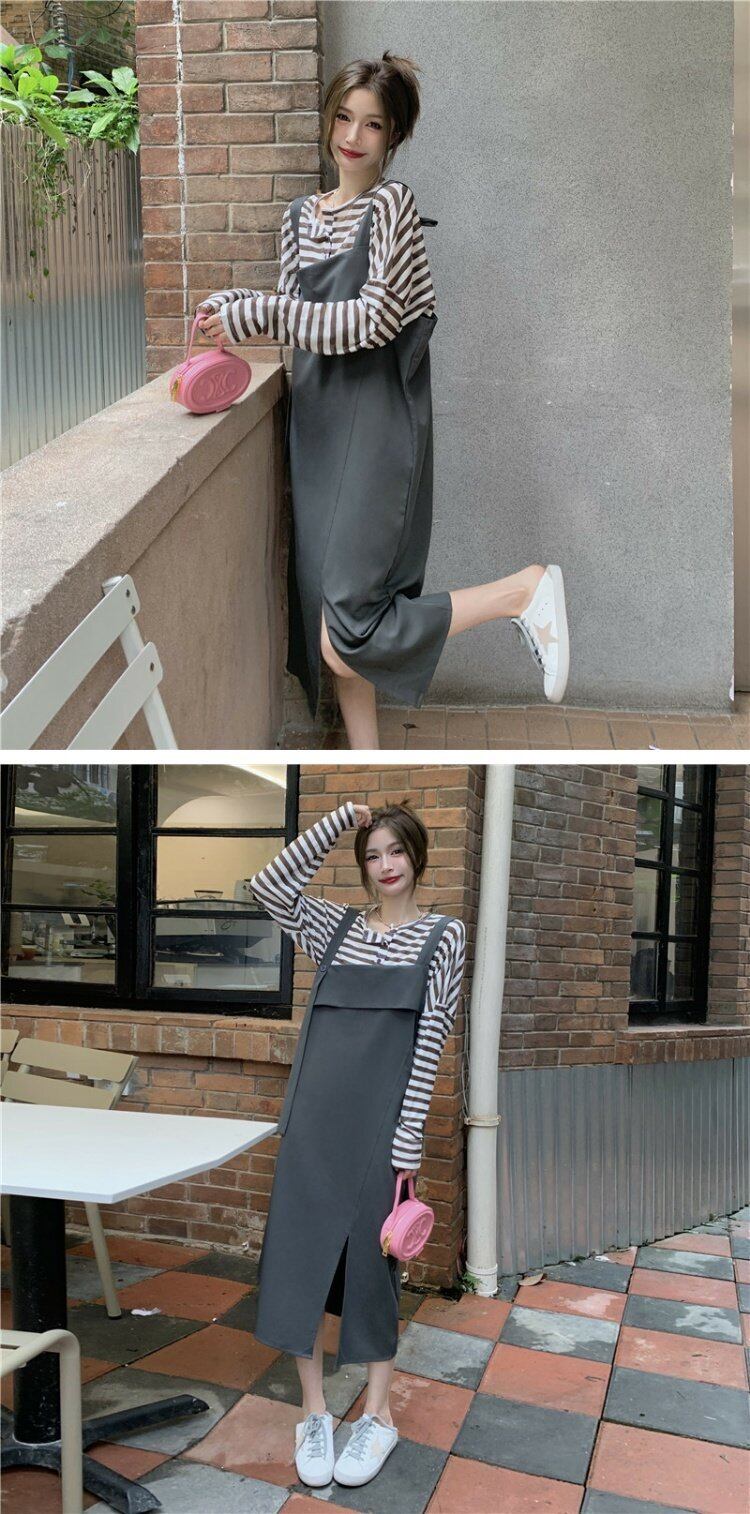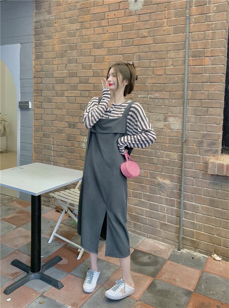 色:ストライプdトップ,グレーストラップドレス