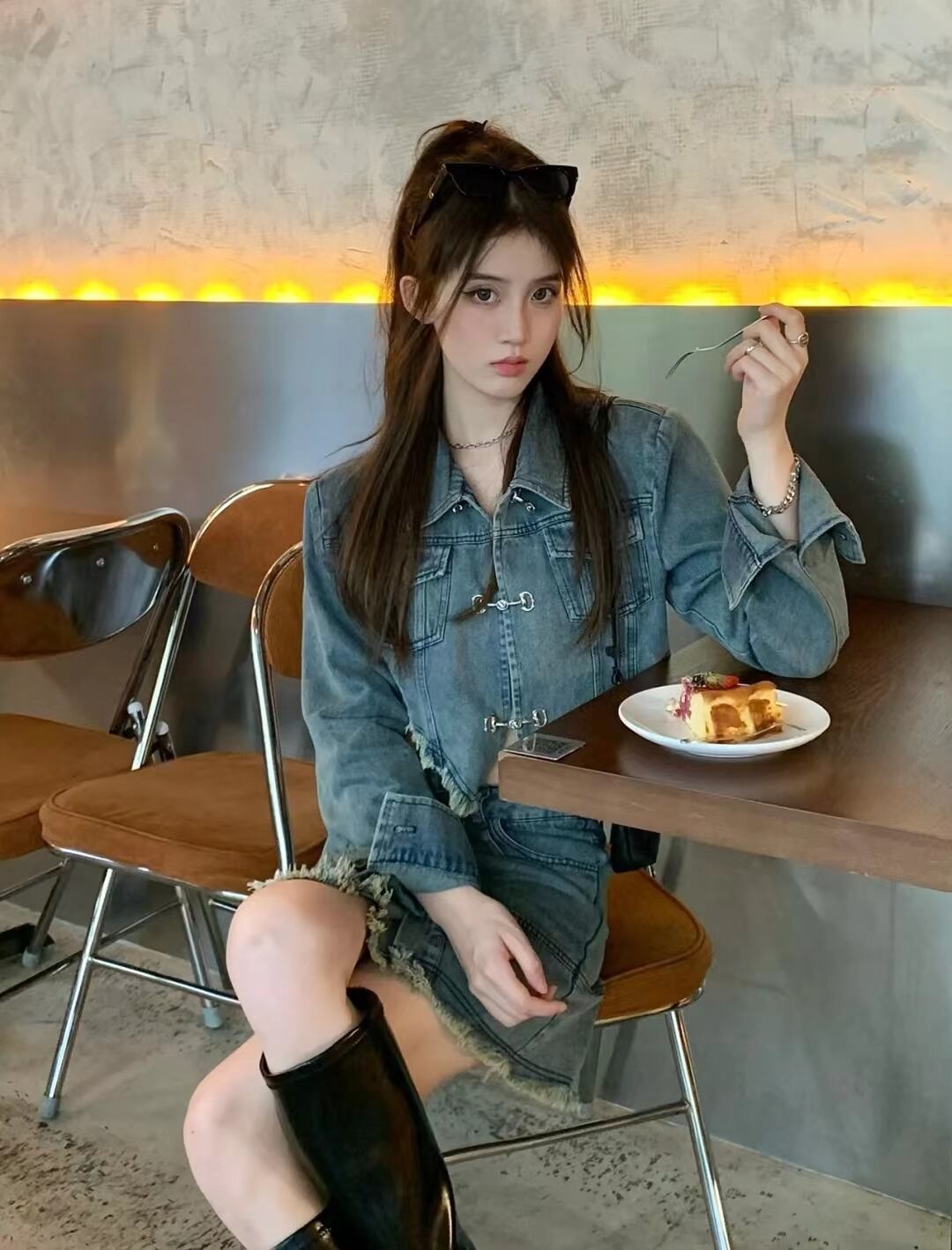 色:デニムjacket,デニムスカート