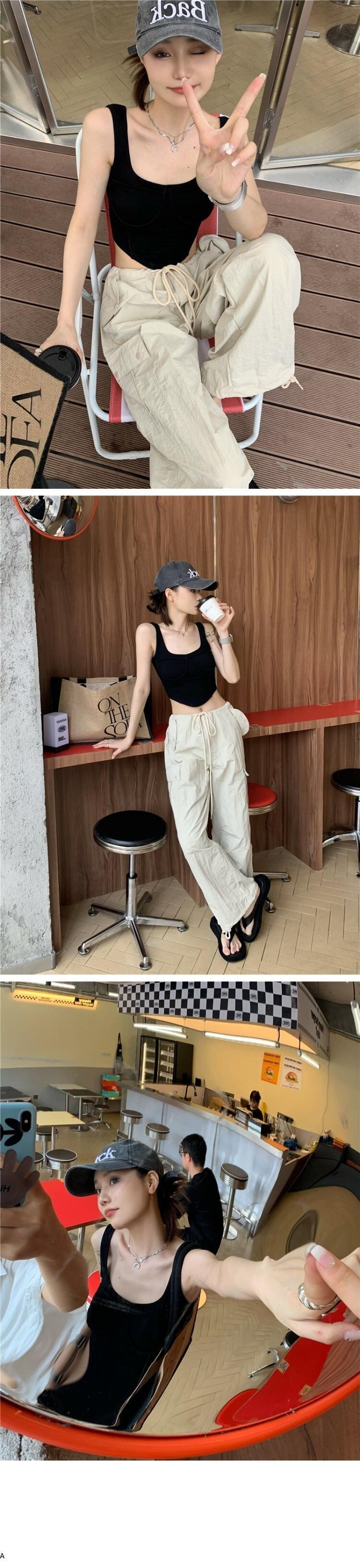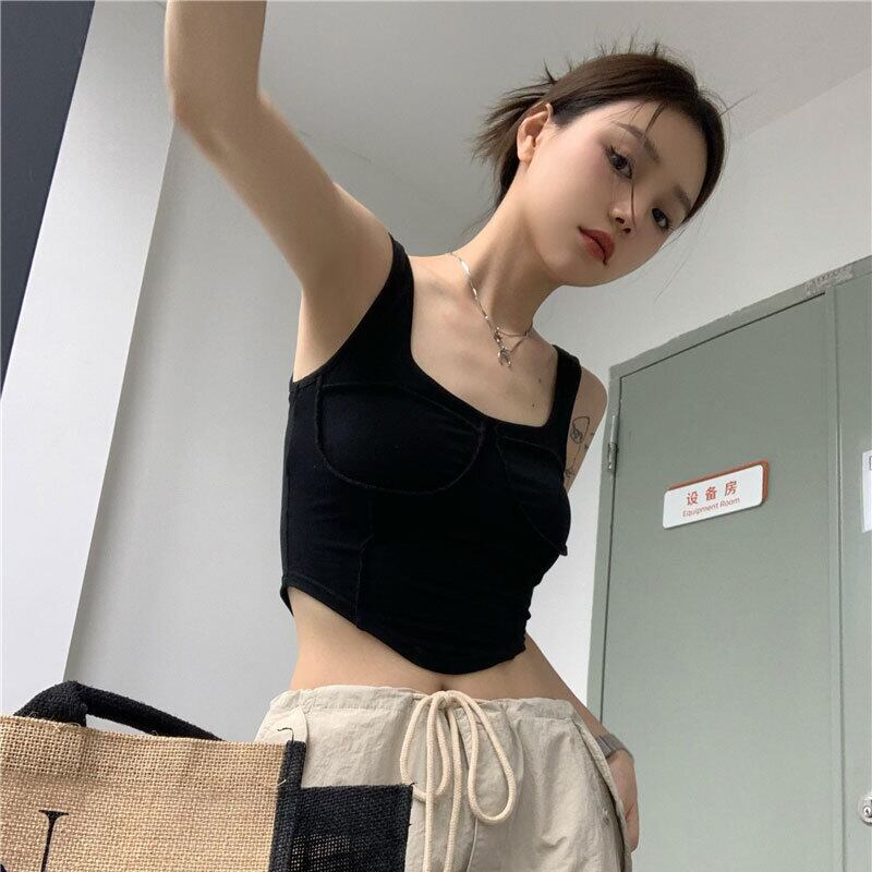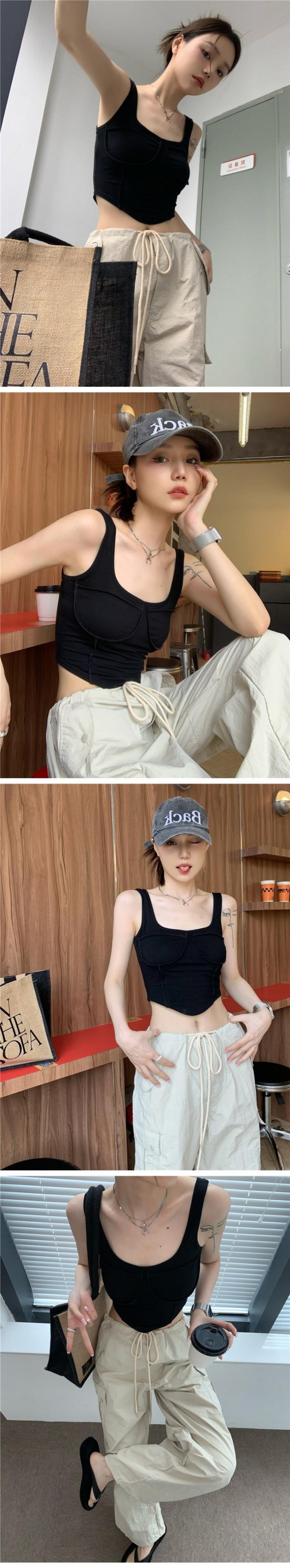 サマーブラックノースリーブショートトップス 大人ガーリー スウィート キュート カジュアル 夏物 s576124605622070