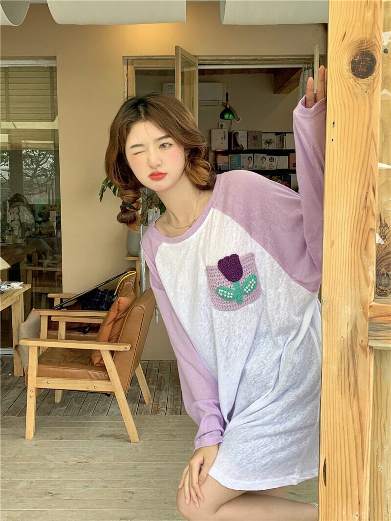 カラーTシャツ サマーニットポケットルーズトップス ロング 大人ガーリー スウィート キュート カジュアル 夏物 s576155175249720