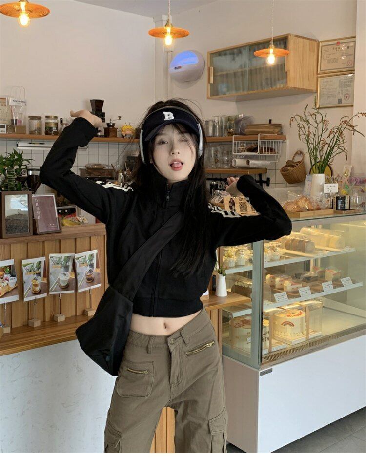 ブラックジャケット オータム薄手カジュアルショートトップス 秋物 s576157650868845