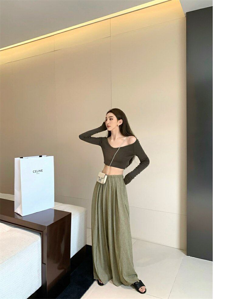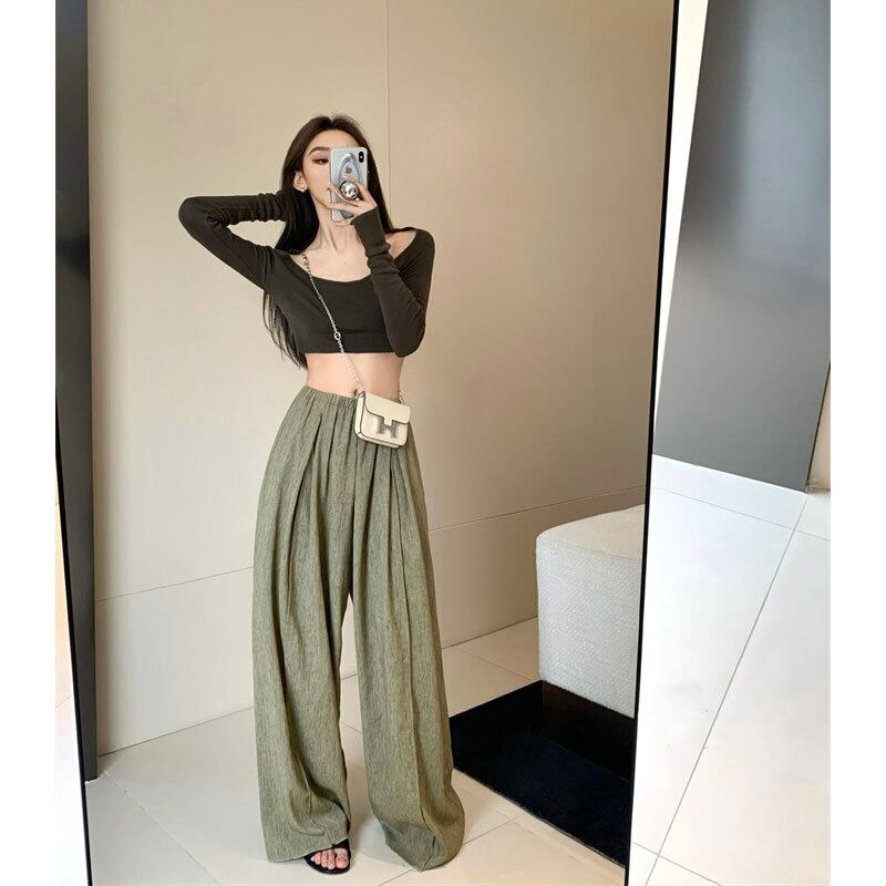 ワイドレッグパンツ サマー薄手ルーズ 夏物 ワイドパンツ s576122794790494