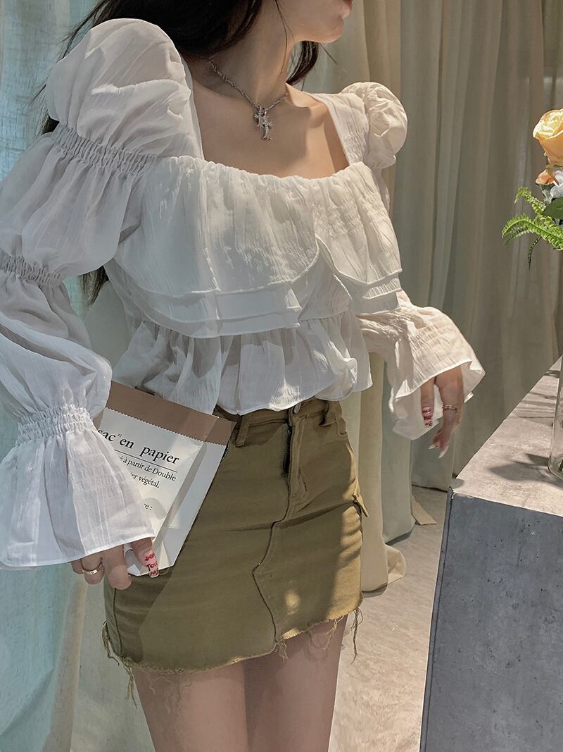 シフォンショートトップス シャツ サマースタンダードスタイル レトロ 夏物 s576157055990318