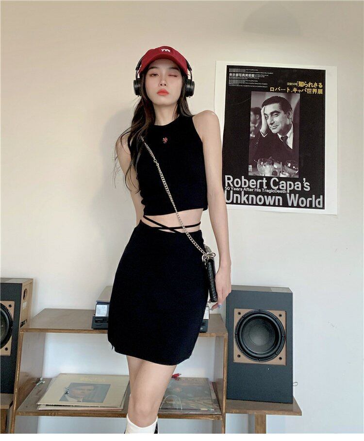 ブラックスカート サマーハイウェストウェストAラインショート 夏物 s576149230885318