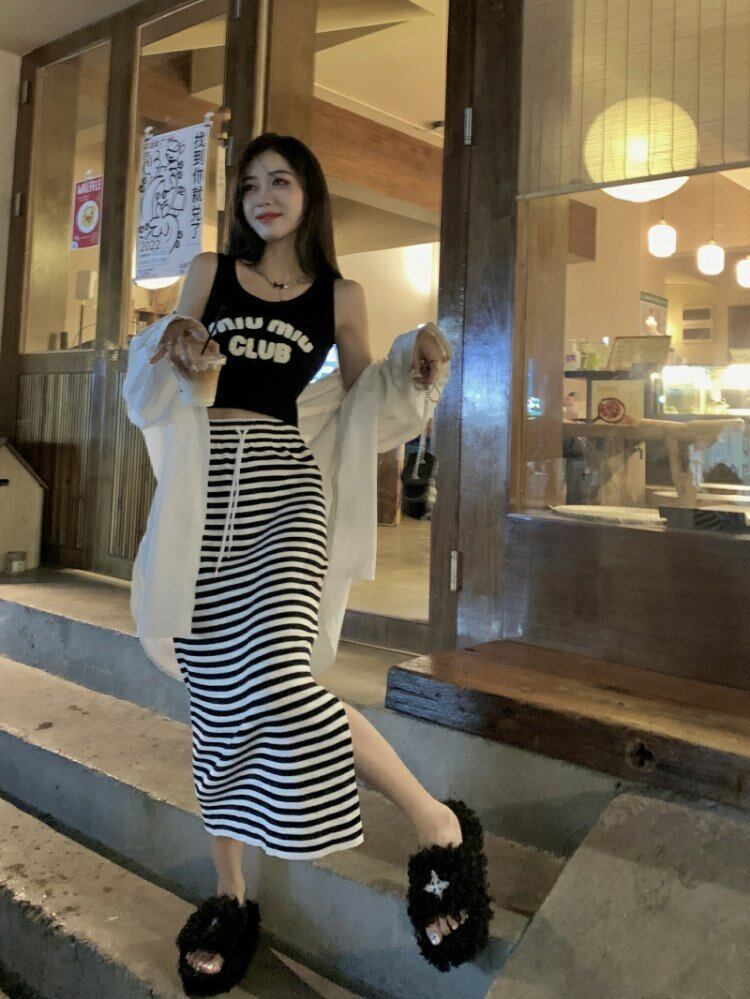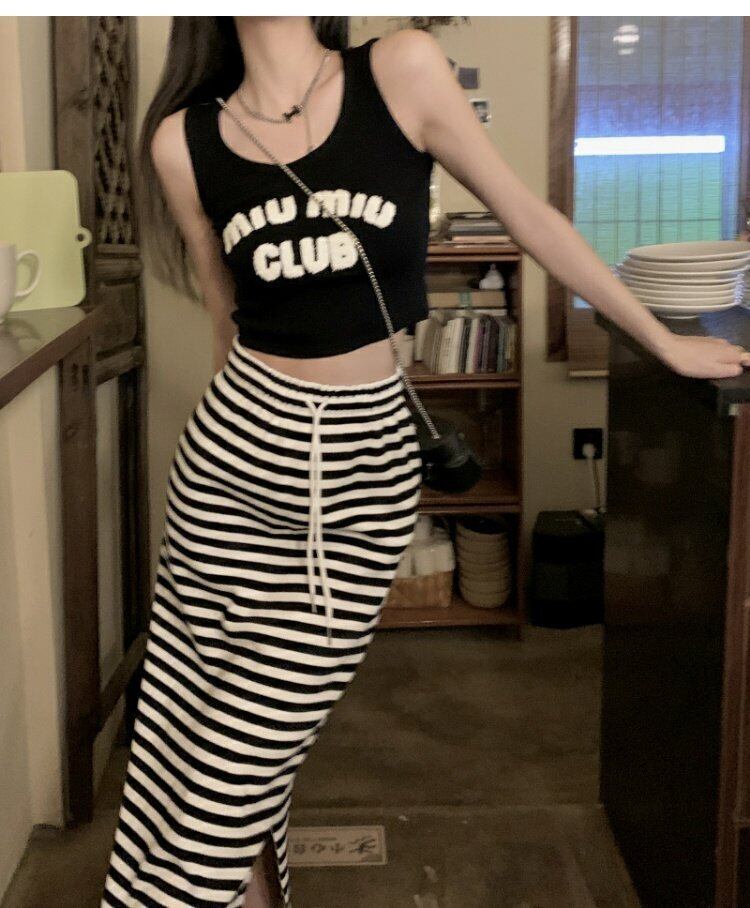 ブラックサマースタイルベーシックレッドノースリーブショートトップス 夏物 ピュア s576190698494087