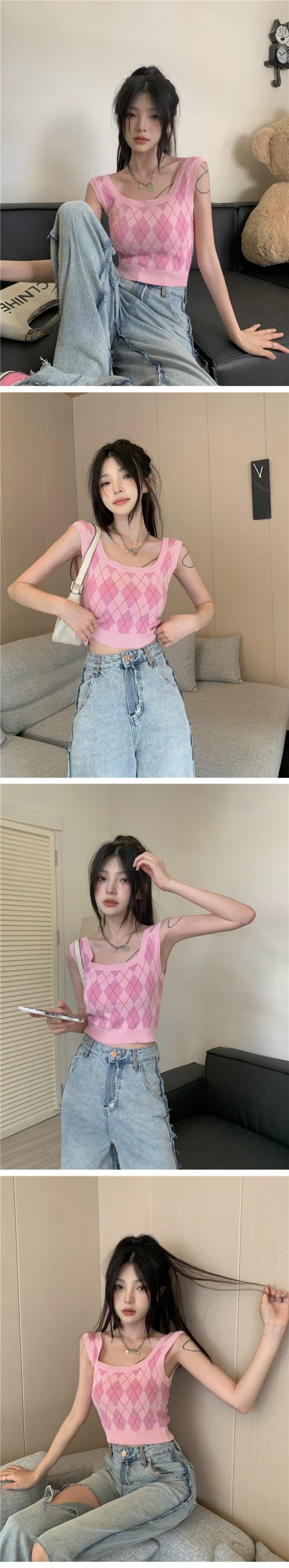 ニットサマーノースリーブショートトップス 夏物 s576153839124255