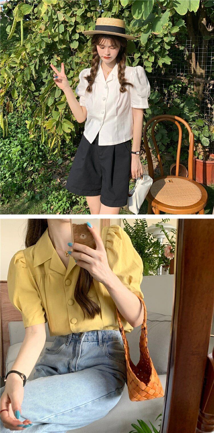 イエロースリーブシャツ サマートップス 夏物 s576141692251679