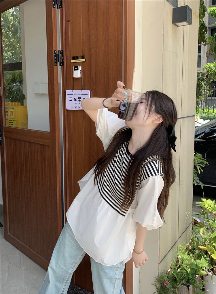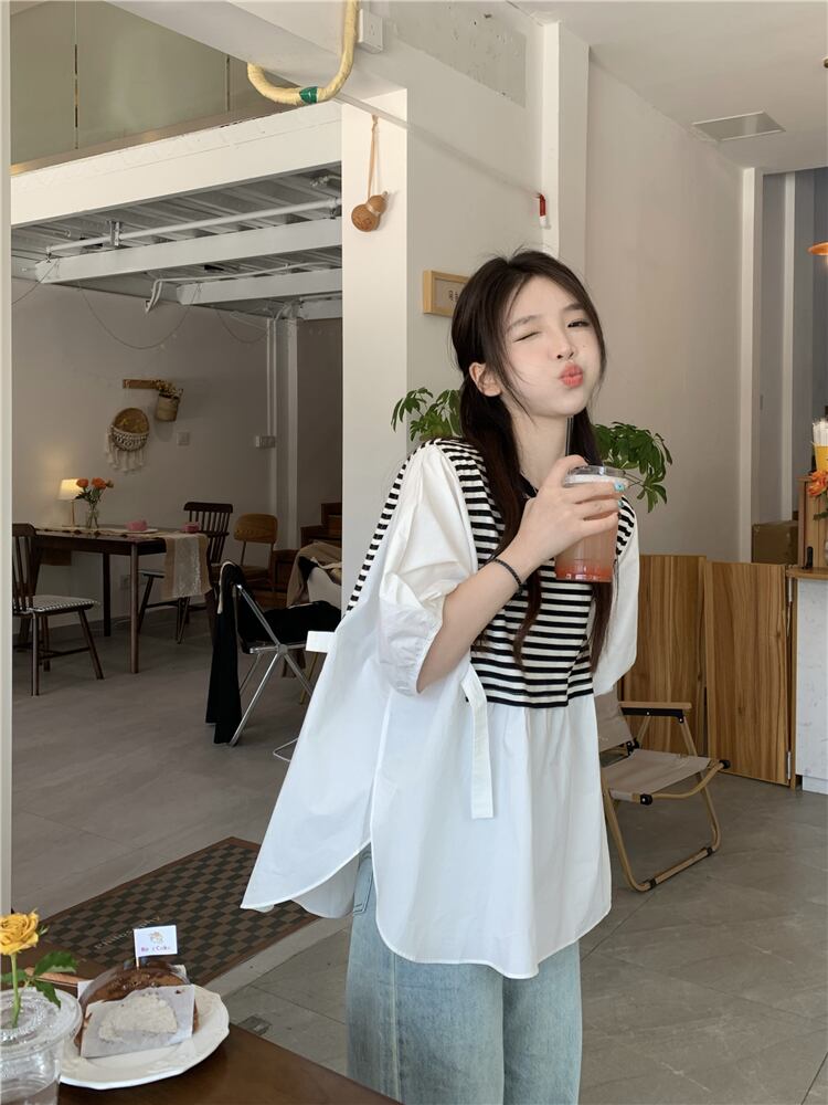 スリーブトップス サマーシャツ ストライプ 大人ガーリー スウィート キュート カジュアル 夏物 s576154865206728