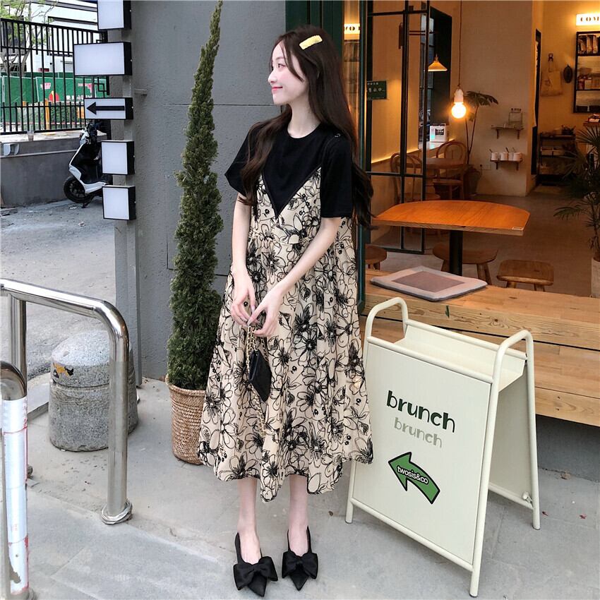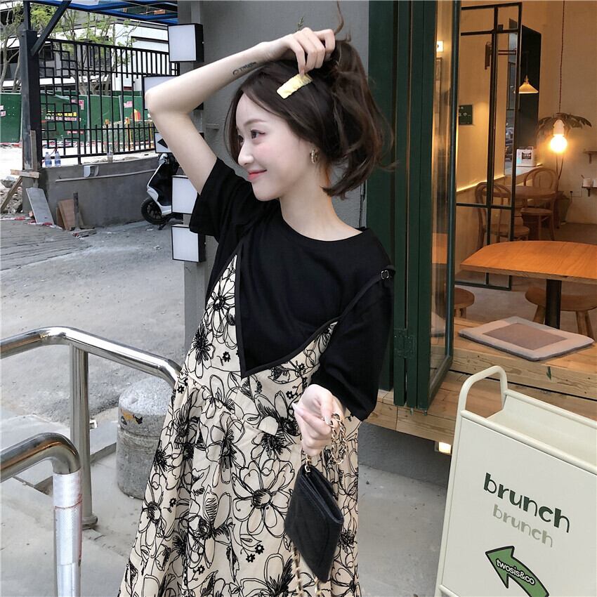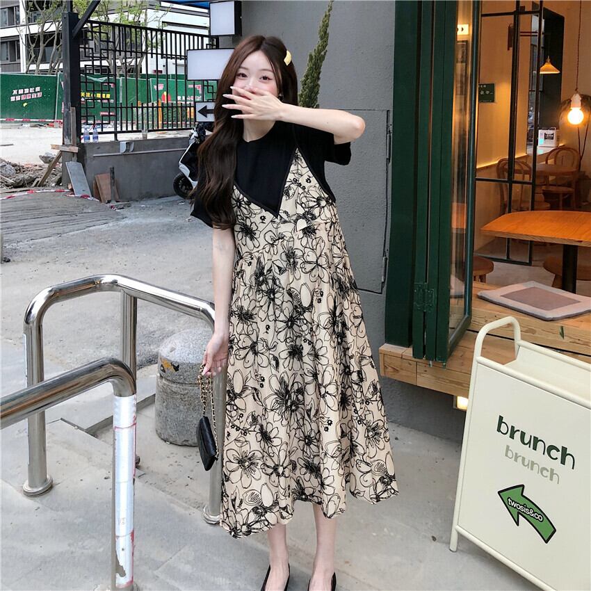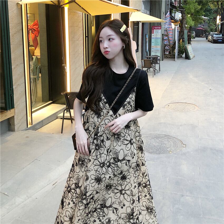 スタンダードVネックノースリーブフローラルドレス サマーFlowerデザイン スカート レトロ 夏物 花柄 フラワーデザイン s576124536649387