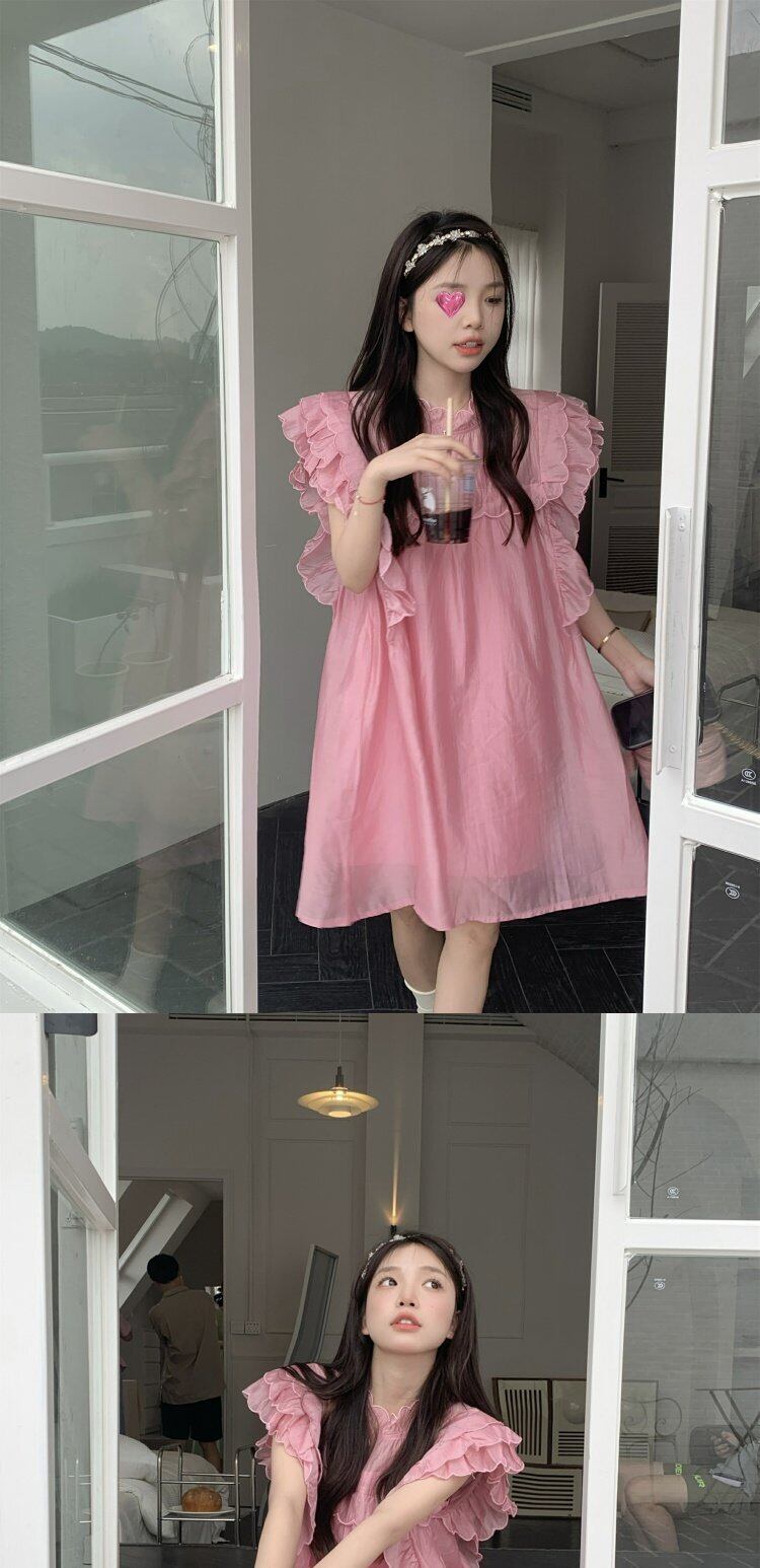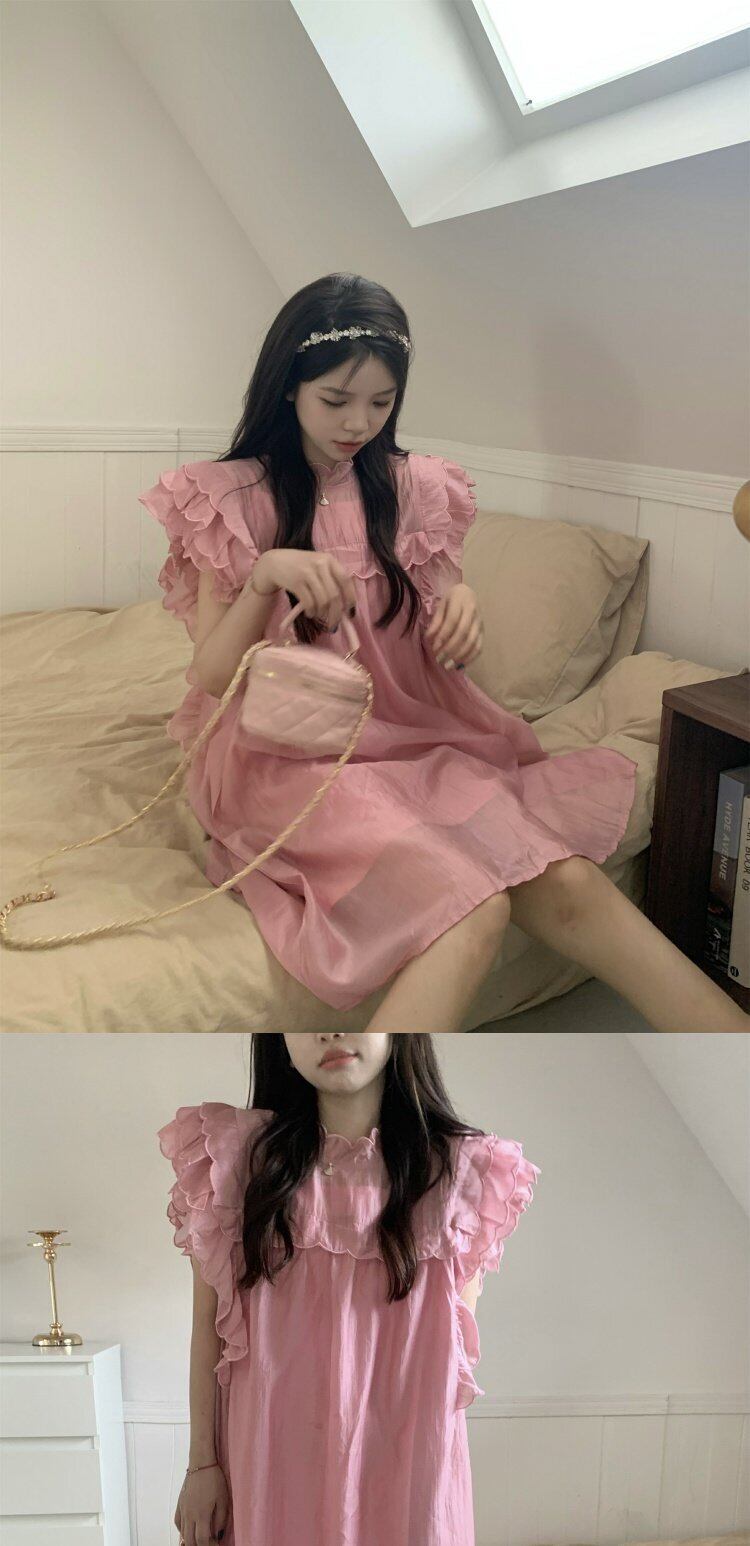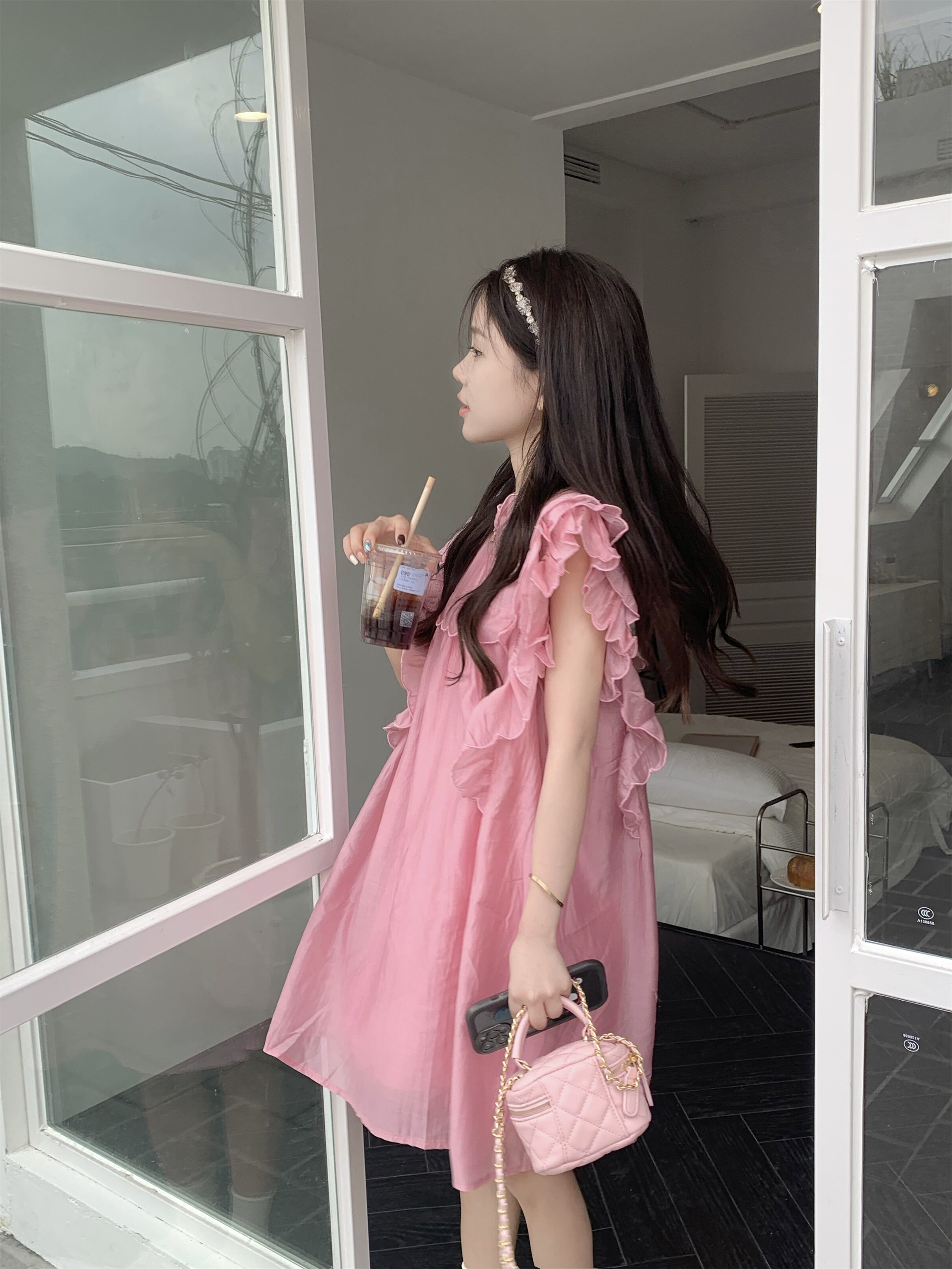 スリーブドレス サマースタイルスカート ピンク 大人ガーリー スウィート キュート カジュアル 夏物 s576130222763486