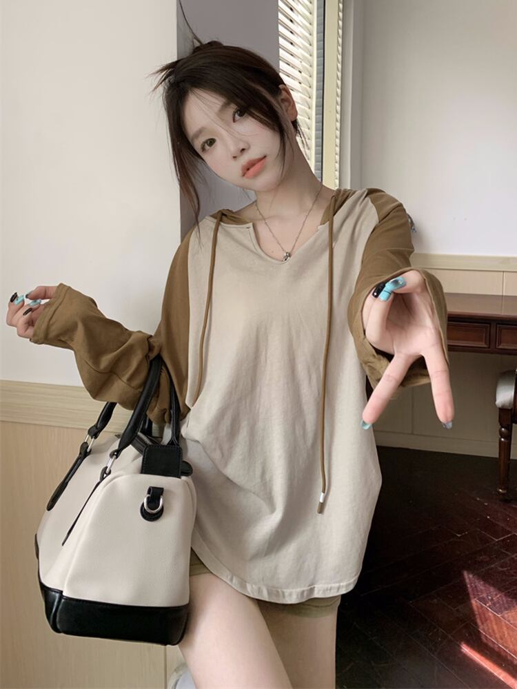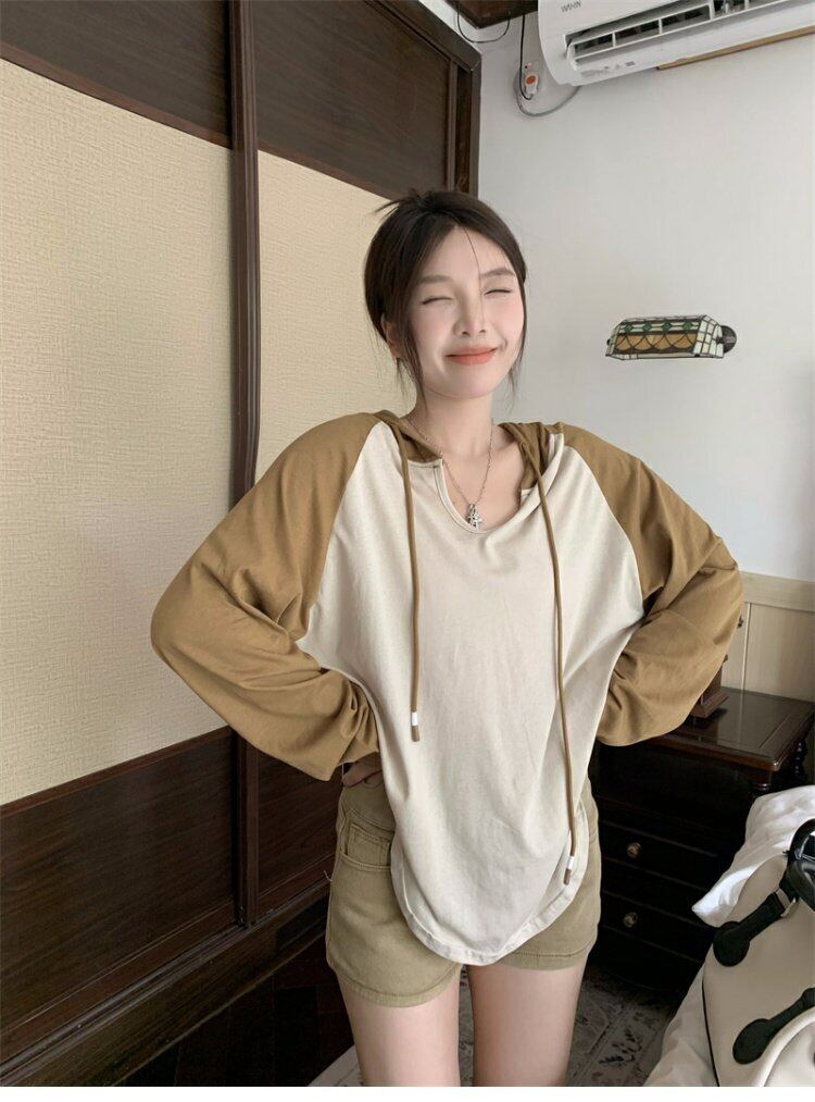 フードTシャツ サマー薄手ルーズカジュアルスタイルトップス ロング 夏物 s576158530048287