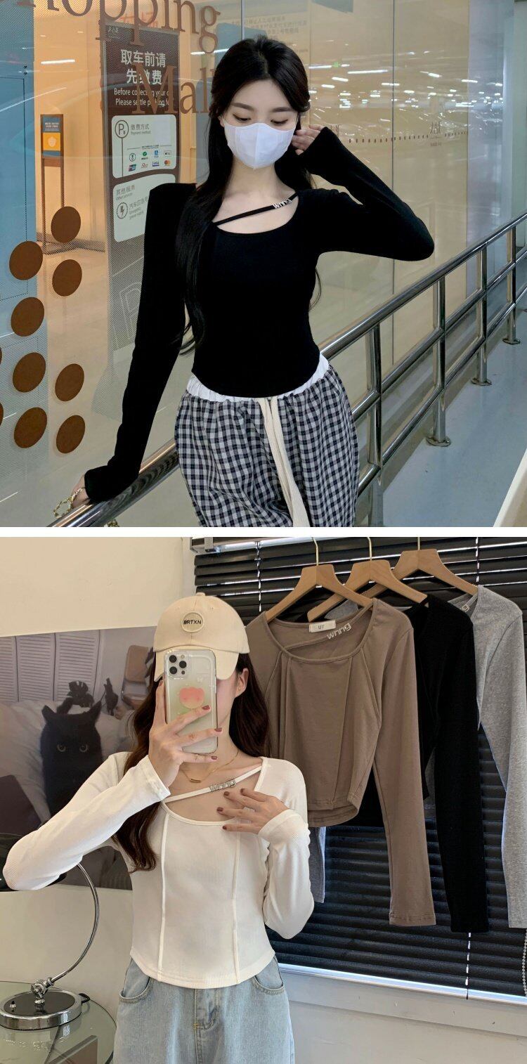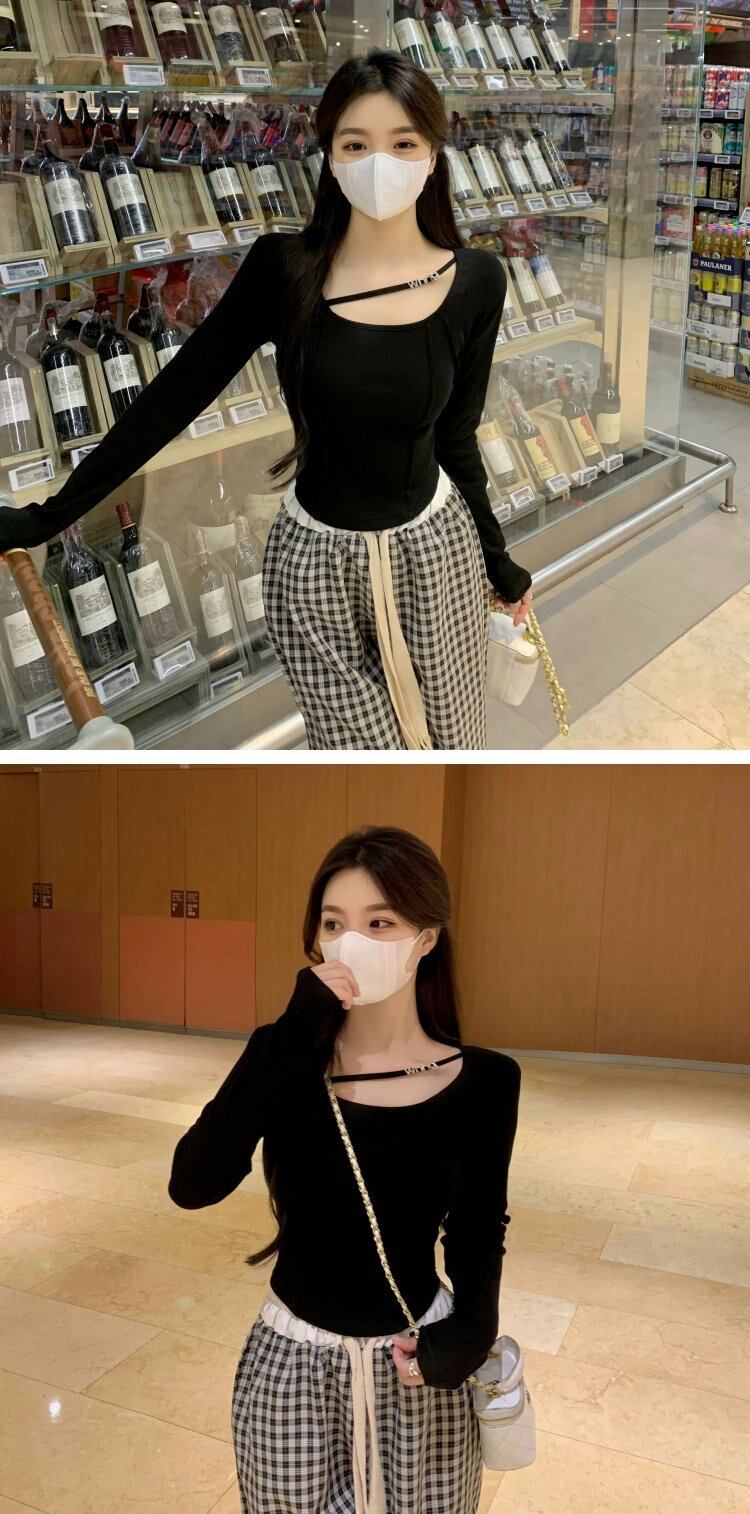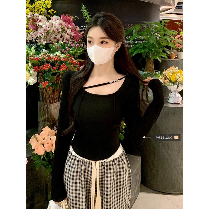 ブラックTシャツ オータムスリムショートトップス ロング 大人ガーリー スウィート キュート カジュアル 秋物 ピュア s576141317377574