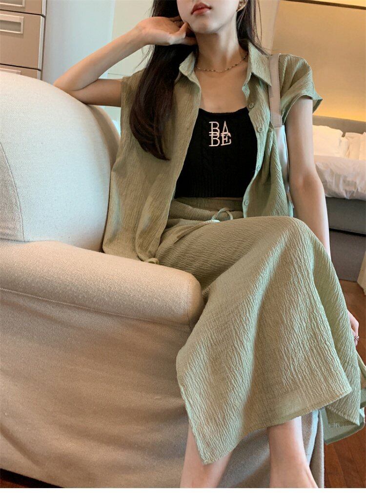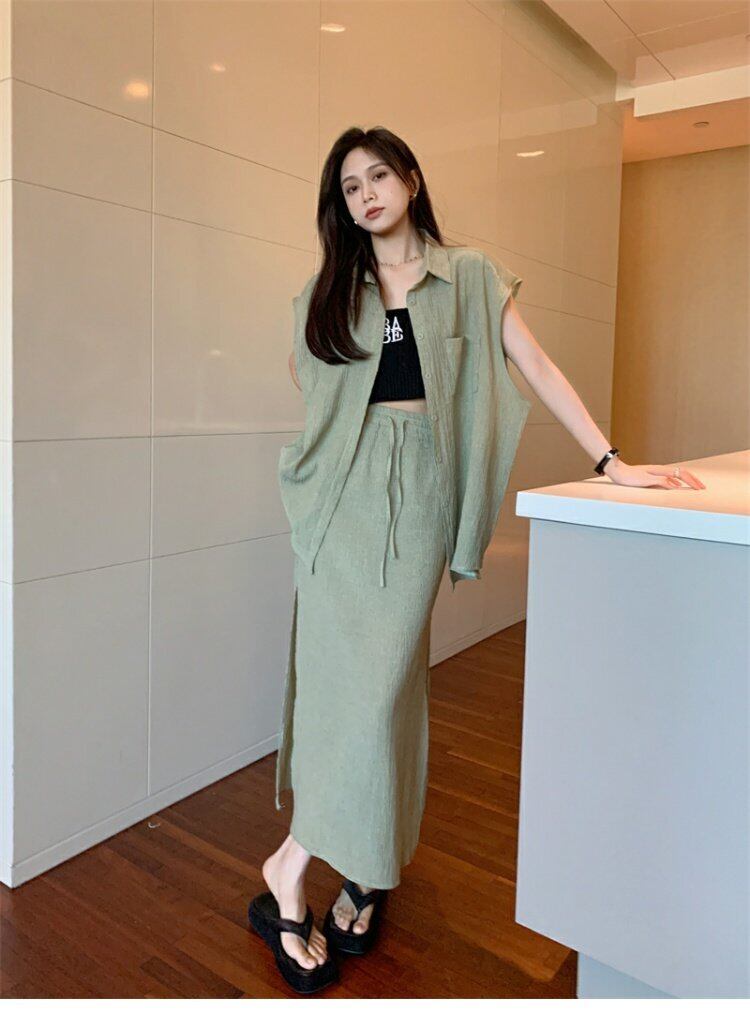 スタンダードスカート サマーシャツ ジャケット セット レトロ 夏物 s576116359000802