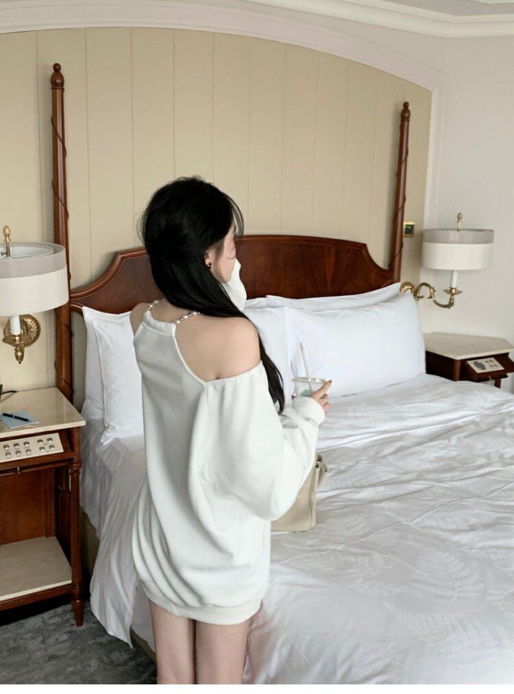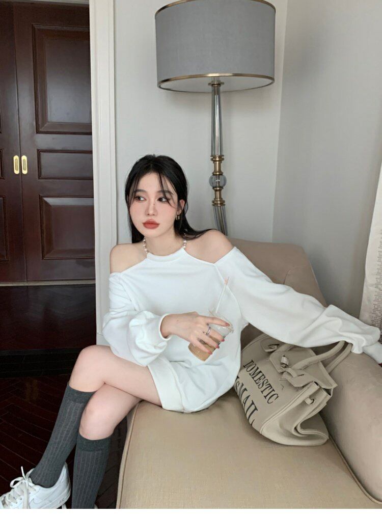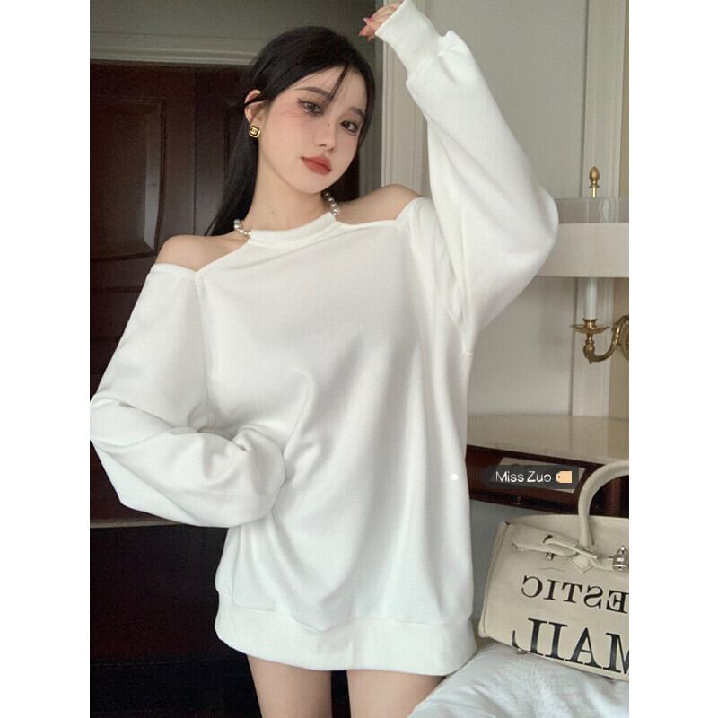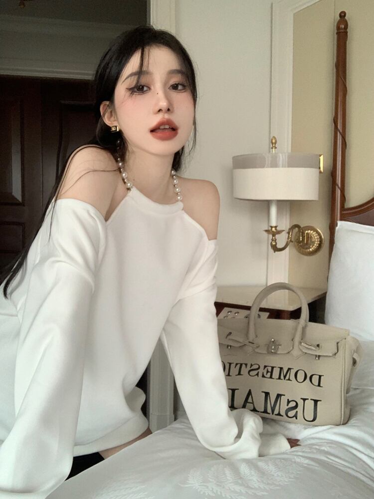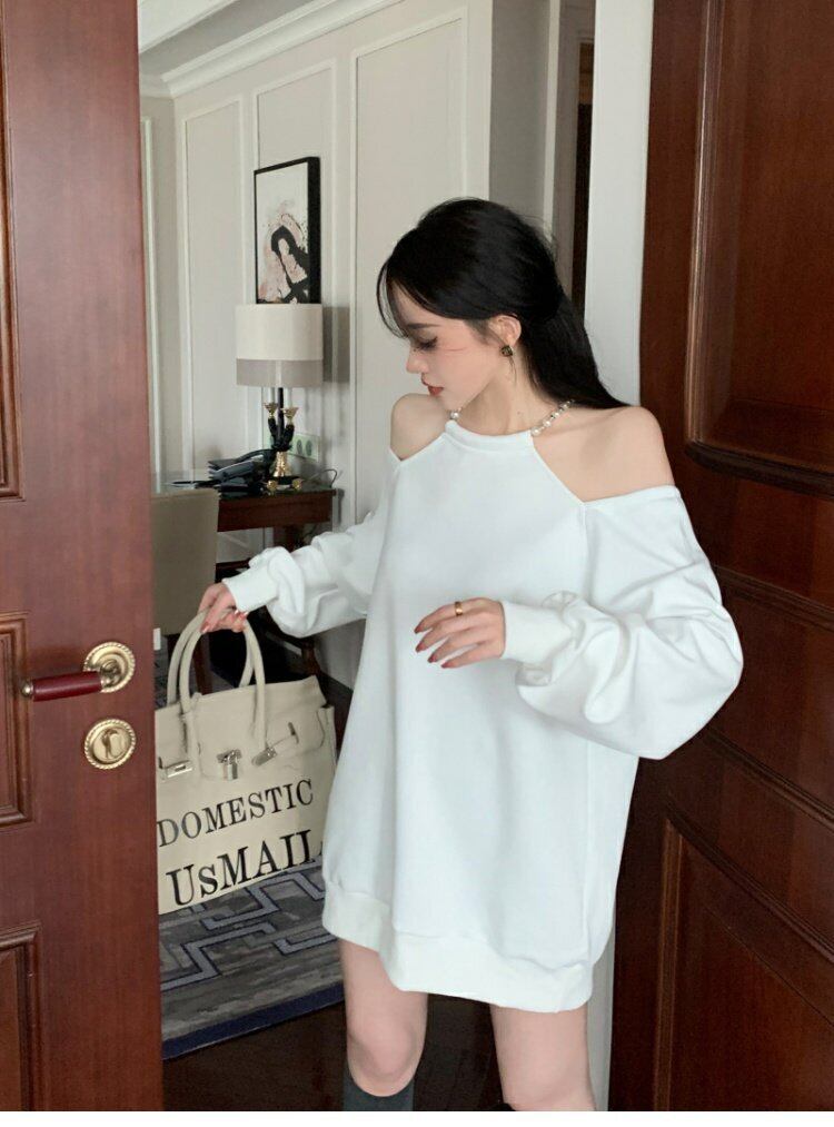 ホワイトセーター オータムルーズスタイルホルタートップス ロング 秋物 オフショルダー s576185819007889
