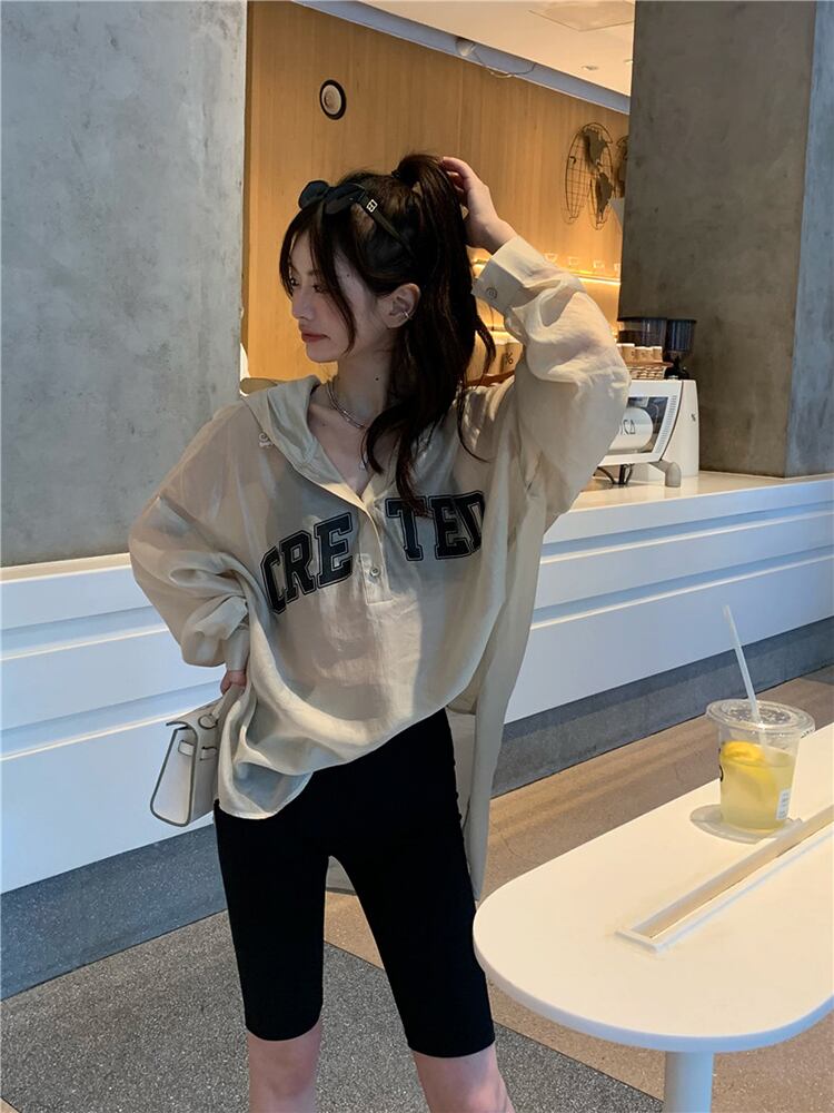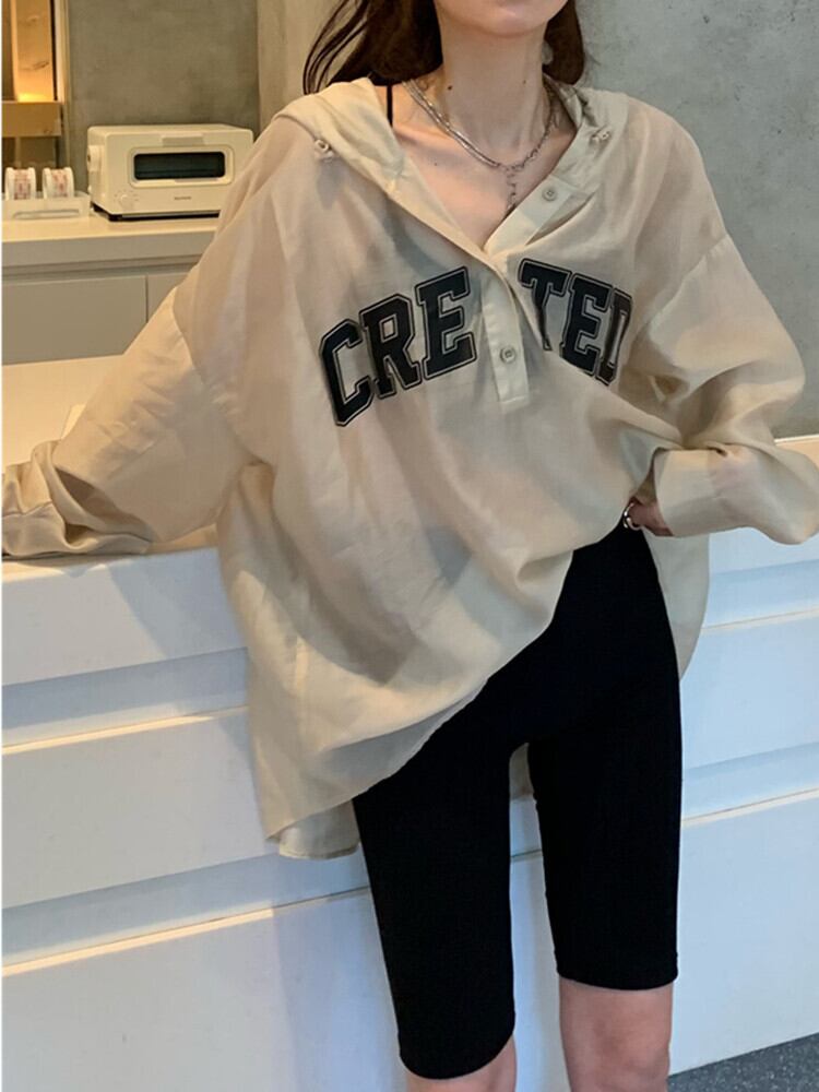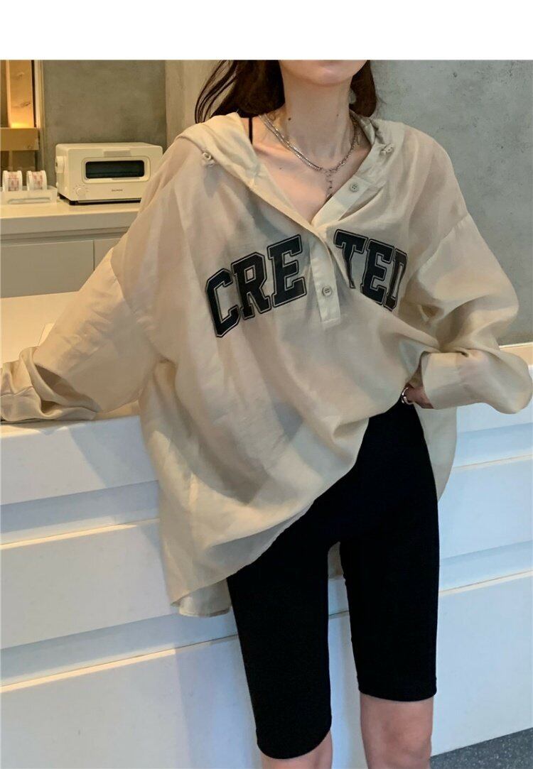 フード薄手サマーシャツ ルーズトップス ロング 夏物 s576190095138548