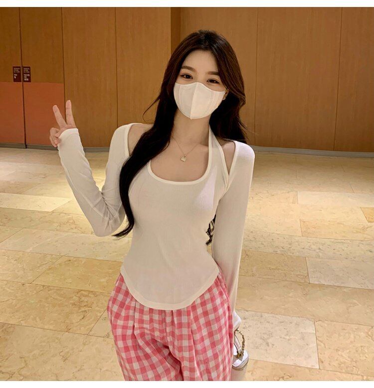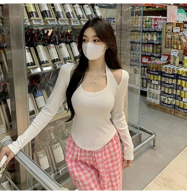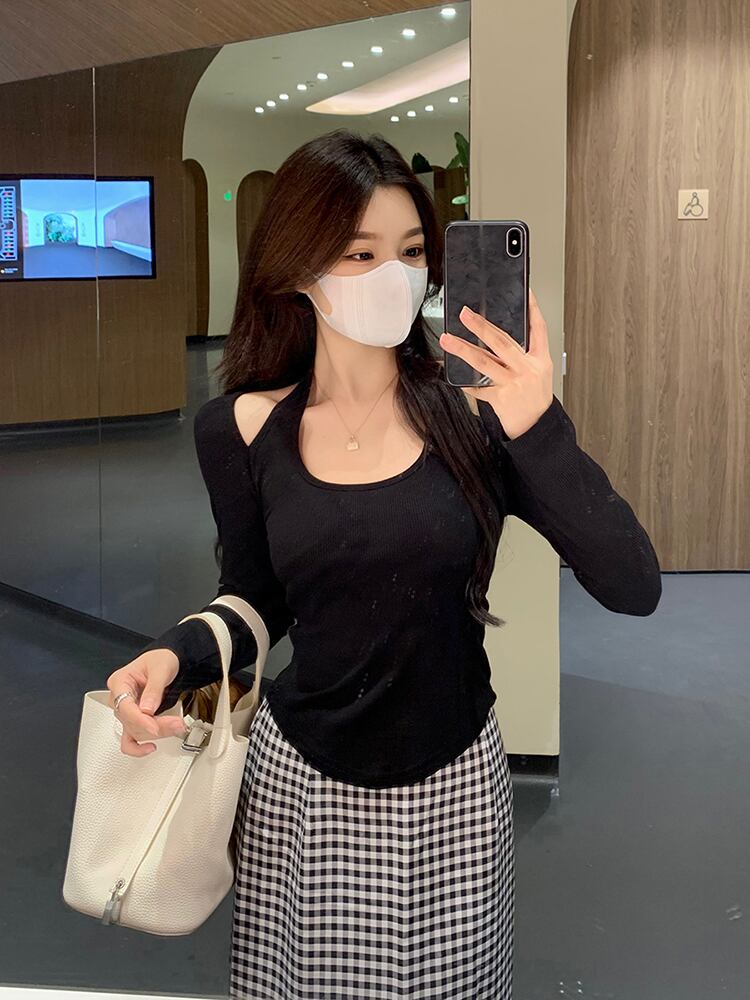 ブラックスリムショートトップス オータムホルターTシャツ ロング 秋物 ピュア s576182367829191