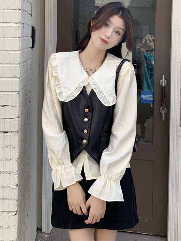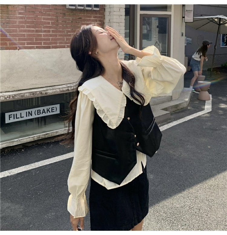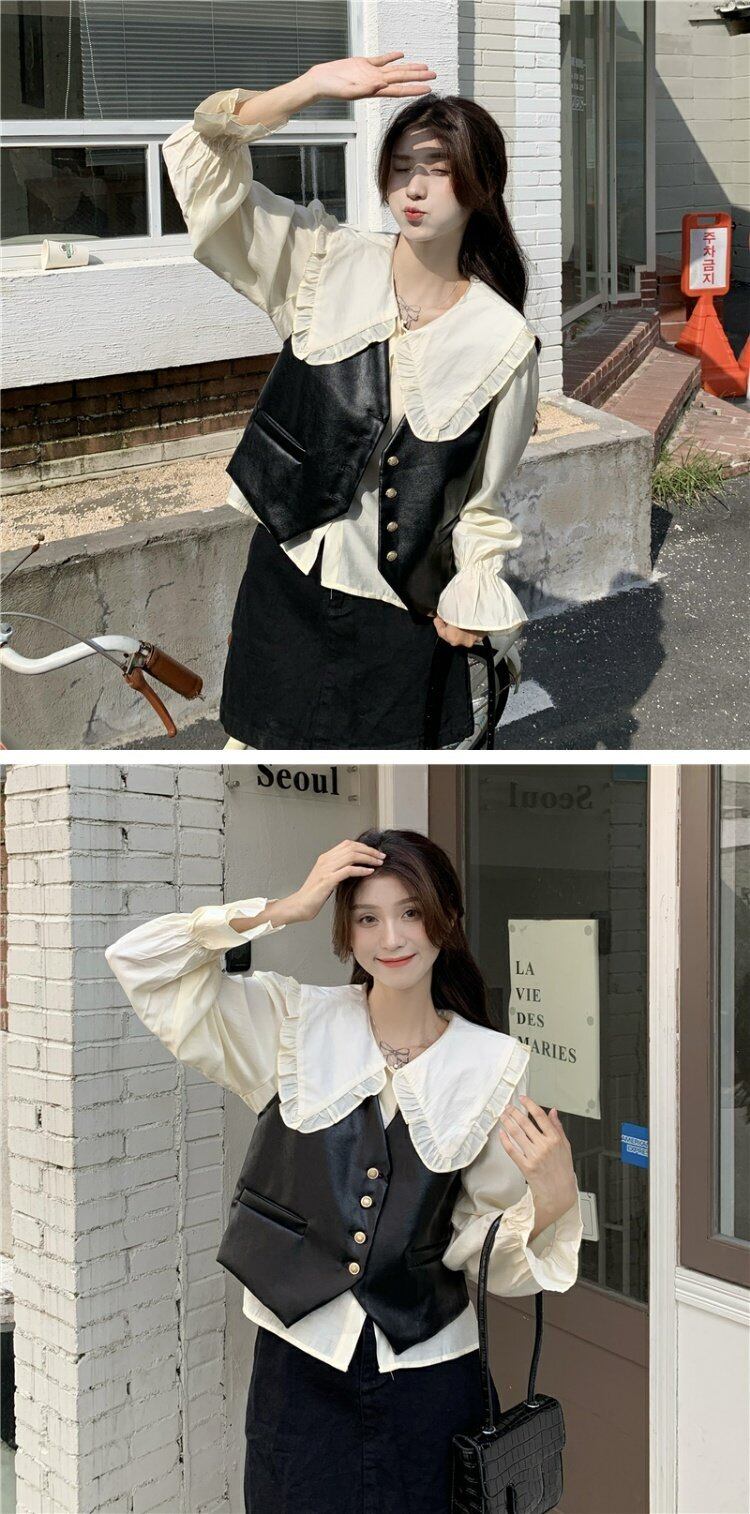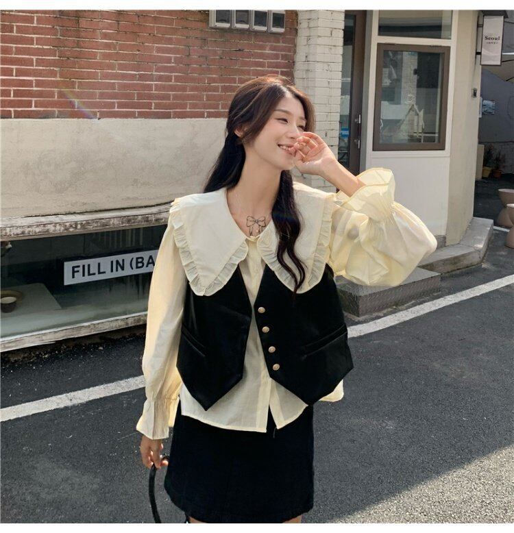 色:Doll襟shirt,ブラックvest,モカvest