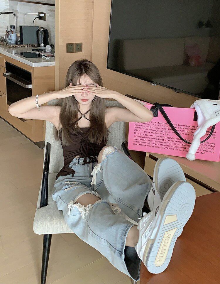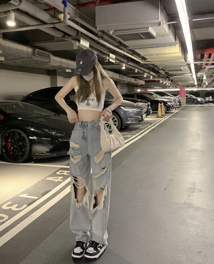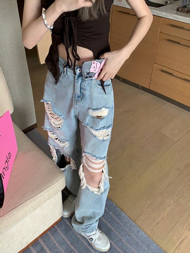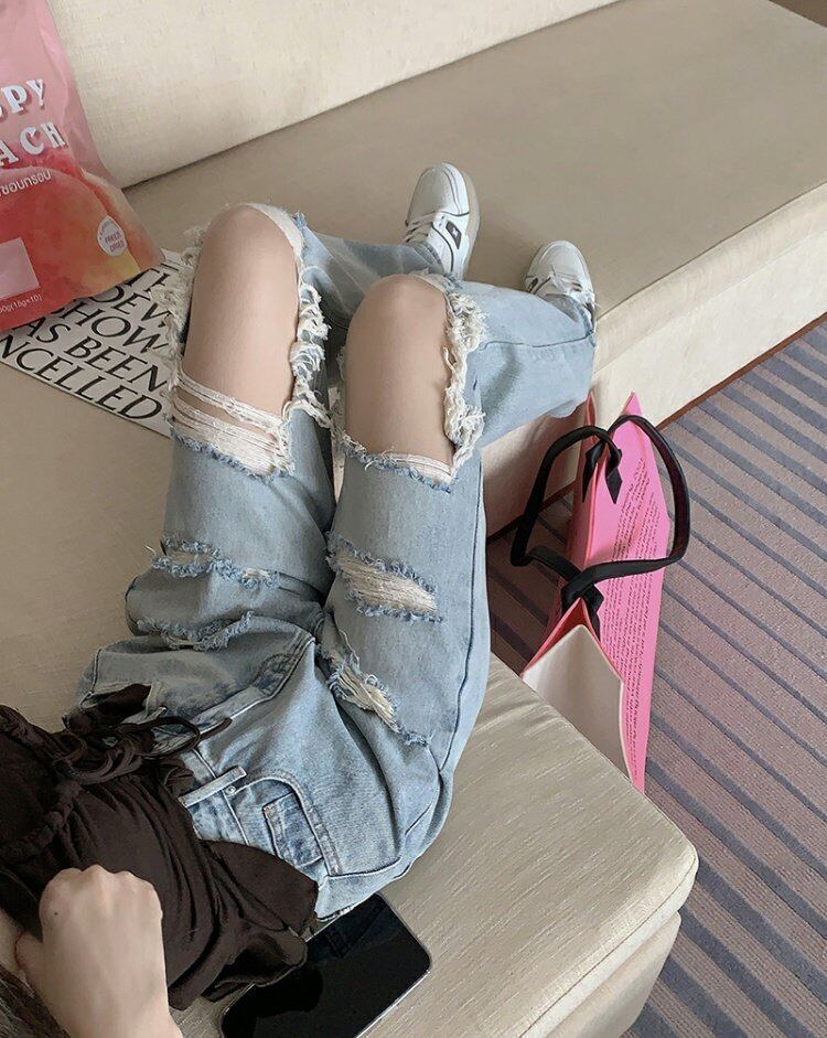 ジーンズ サマー薄手スタイルハイウェストウェストルーズパンツ 大人ガーリー スウィート キュート カジュアル 夏物 s576158969772333