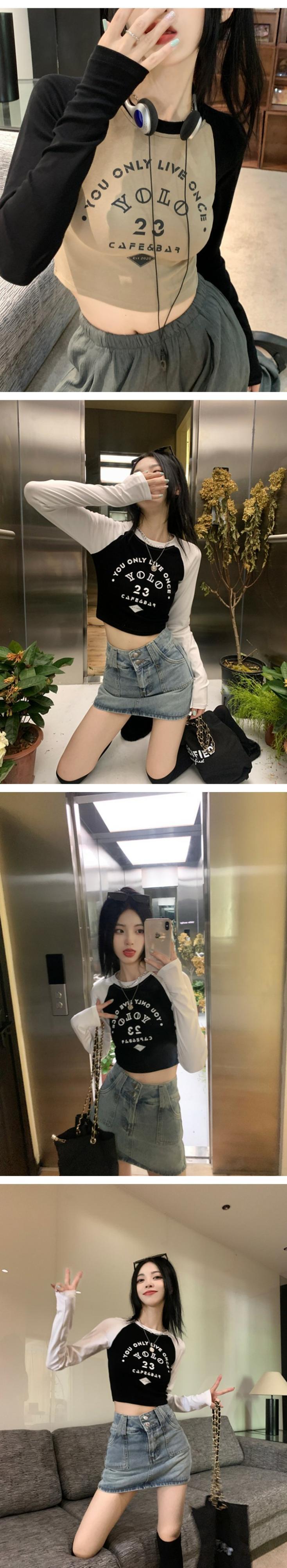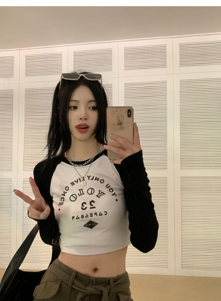 ショートトップス オータムスタンダード長袖スリーブTシャツ ロング レトロ 大人ガーリー スウィート キュート カジュアル 秋物 s576169979223212
