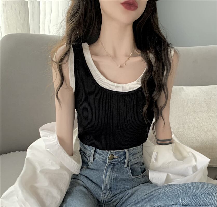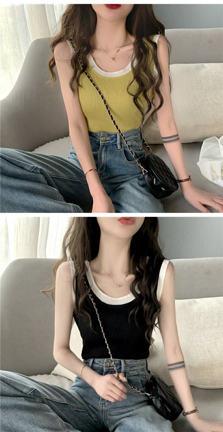 ニットサマースタイルスリムフィットノースリーブショートトップス 夏物 s576184344391078