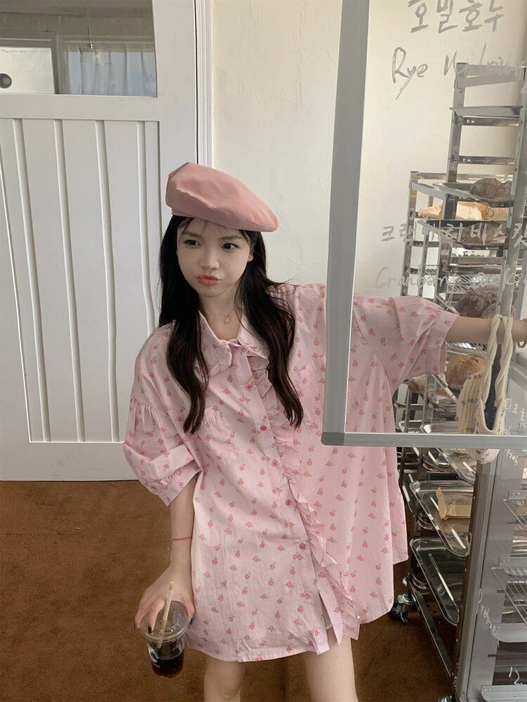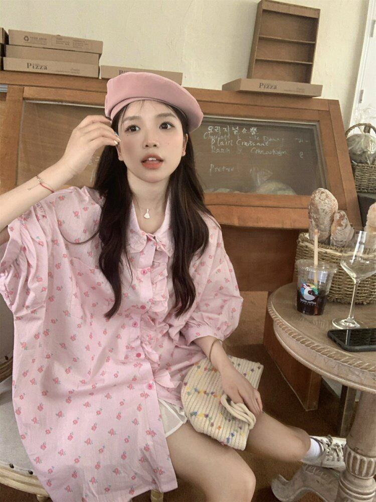フローラルシャツ サマートップス ピンク 大人ガーリー スウィート キュート カジュアル 夏物 花柄 s576154654177030