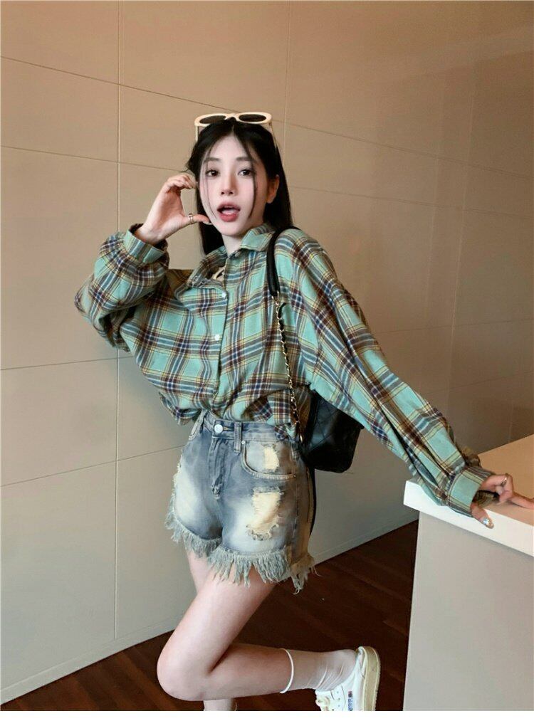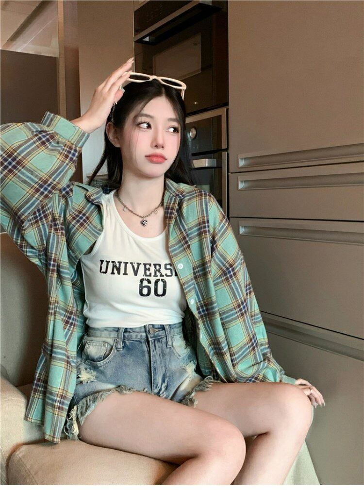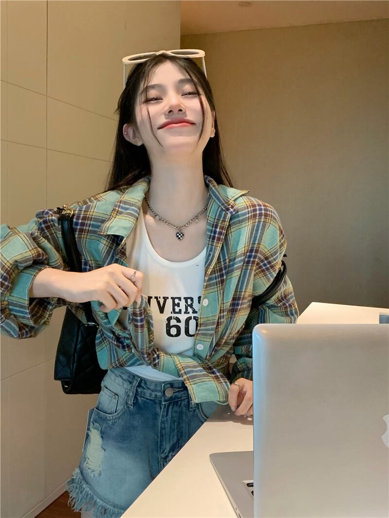 サマー格子柄シャツ ジャケット スタイルトップス ロング 夏物 s576152687286882