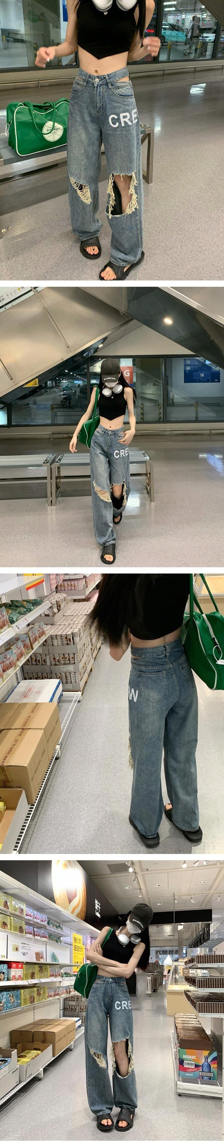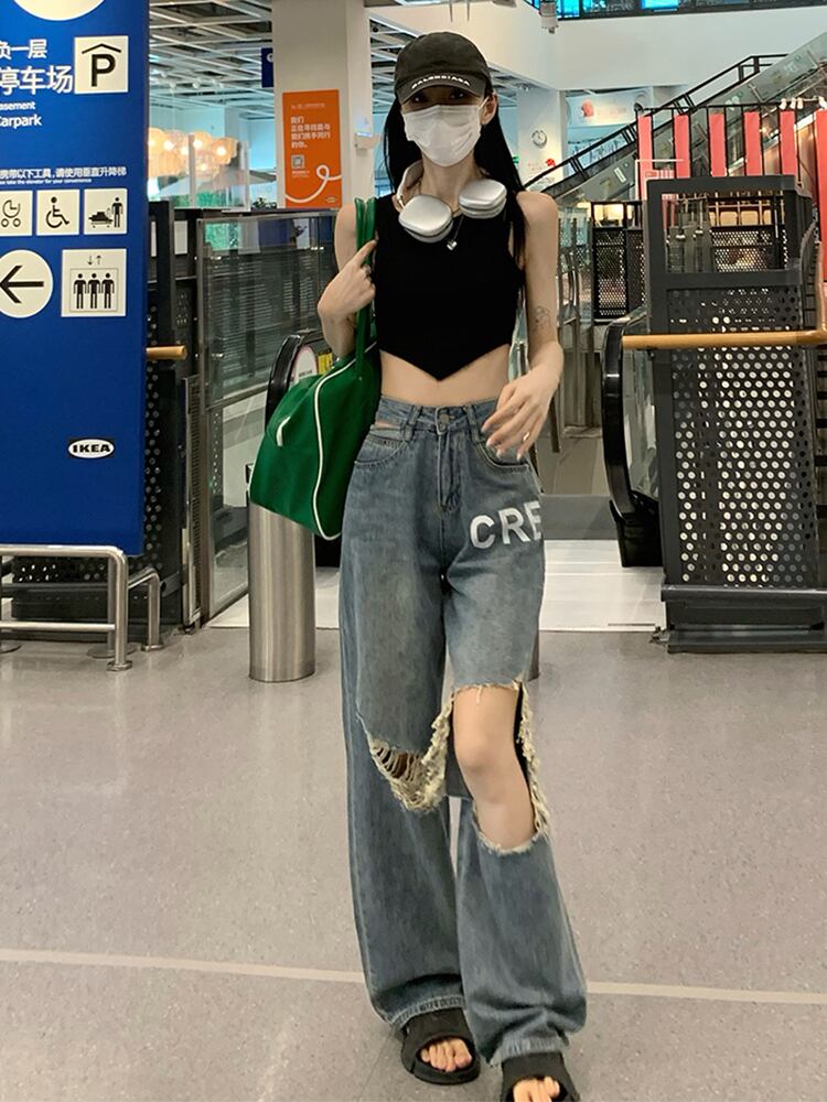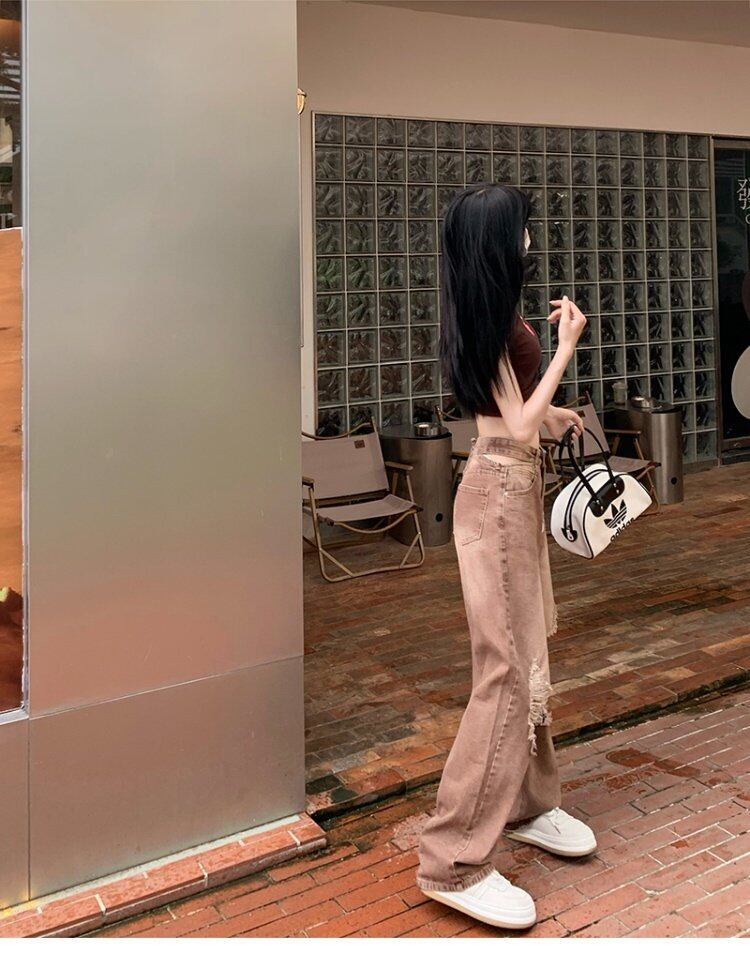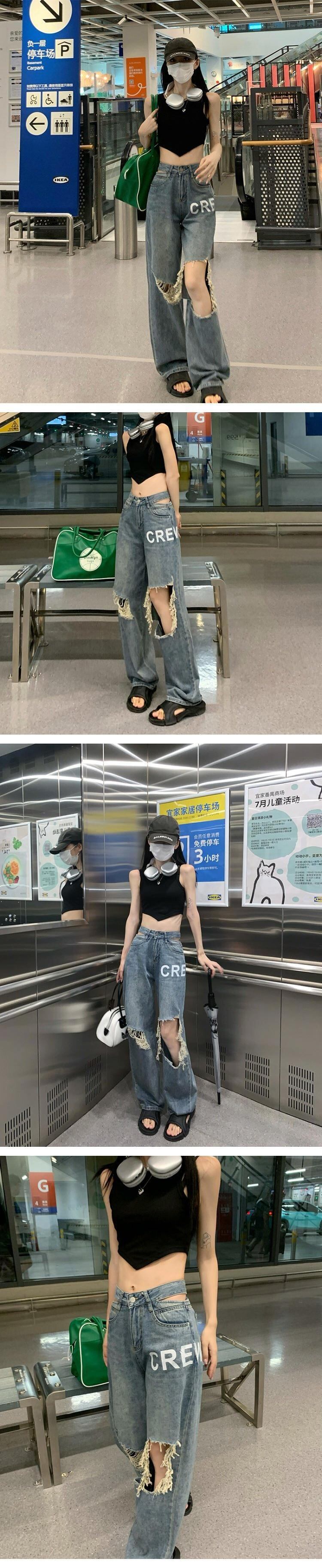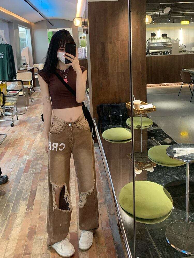 ジーンズ サマーハイウェスト薄手パンツ ルーズ 夏物 s576189880535613