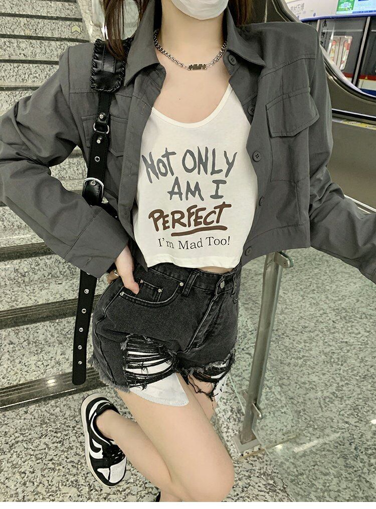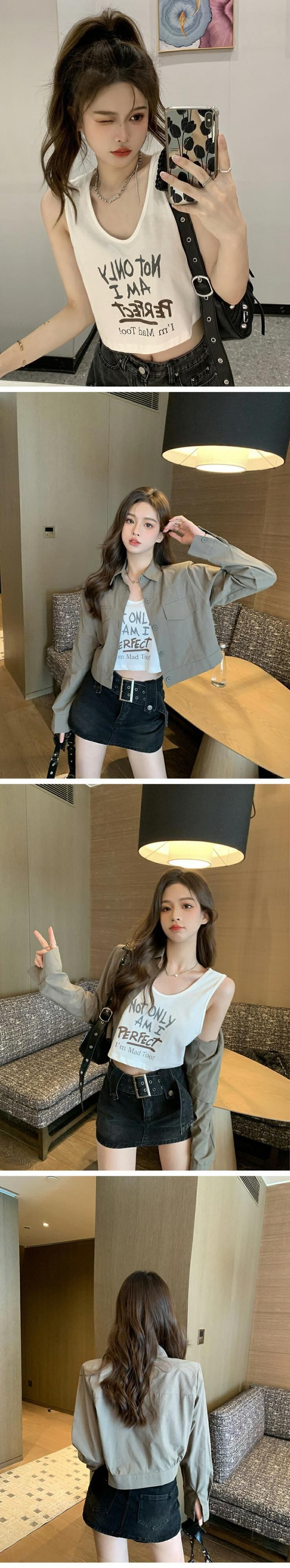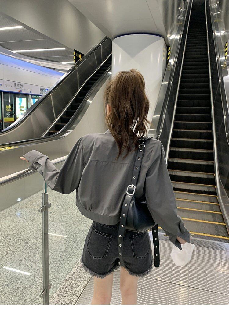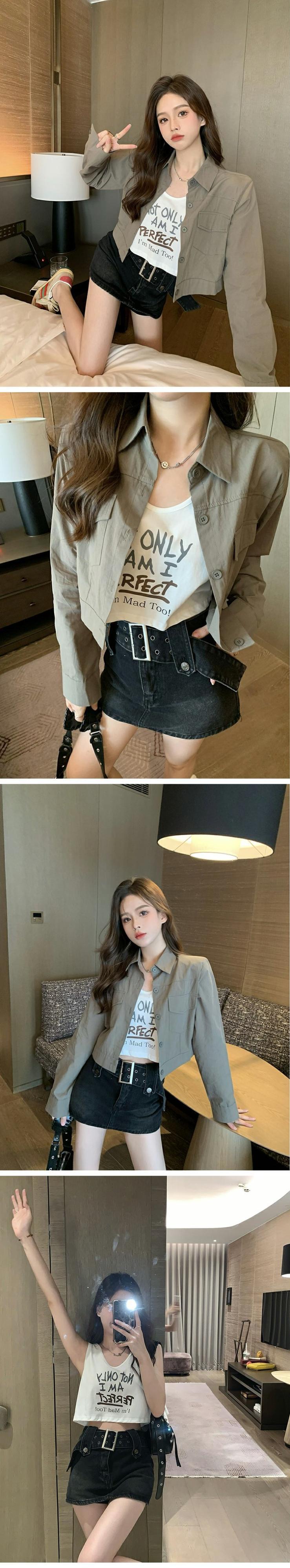 グリーンシャツ ジャケット スプリングオータムルーズショートトップス 春物 秋物 s576189329965649