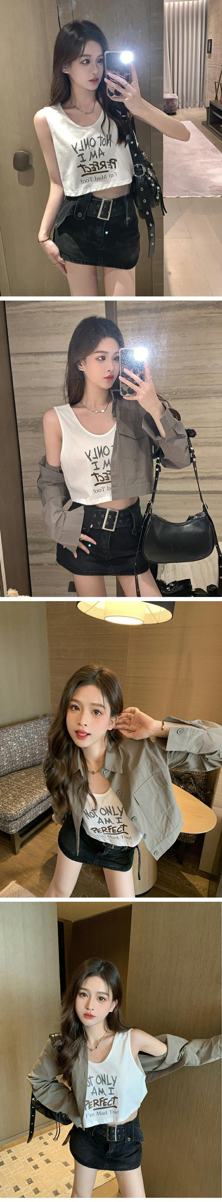 色:ダークグレートップ/ホワイトvest,アーミーグリーンjackeタンdホワイトvest