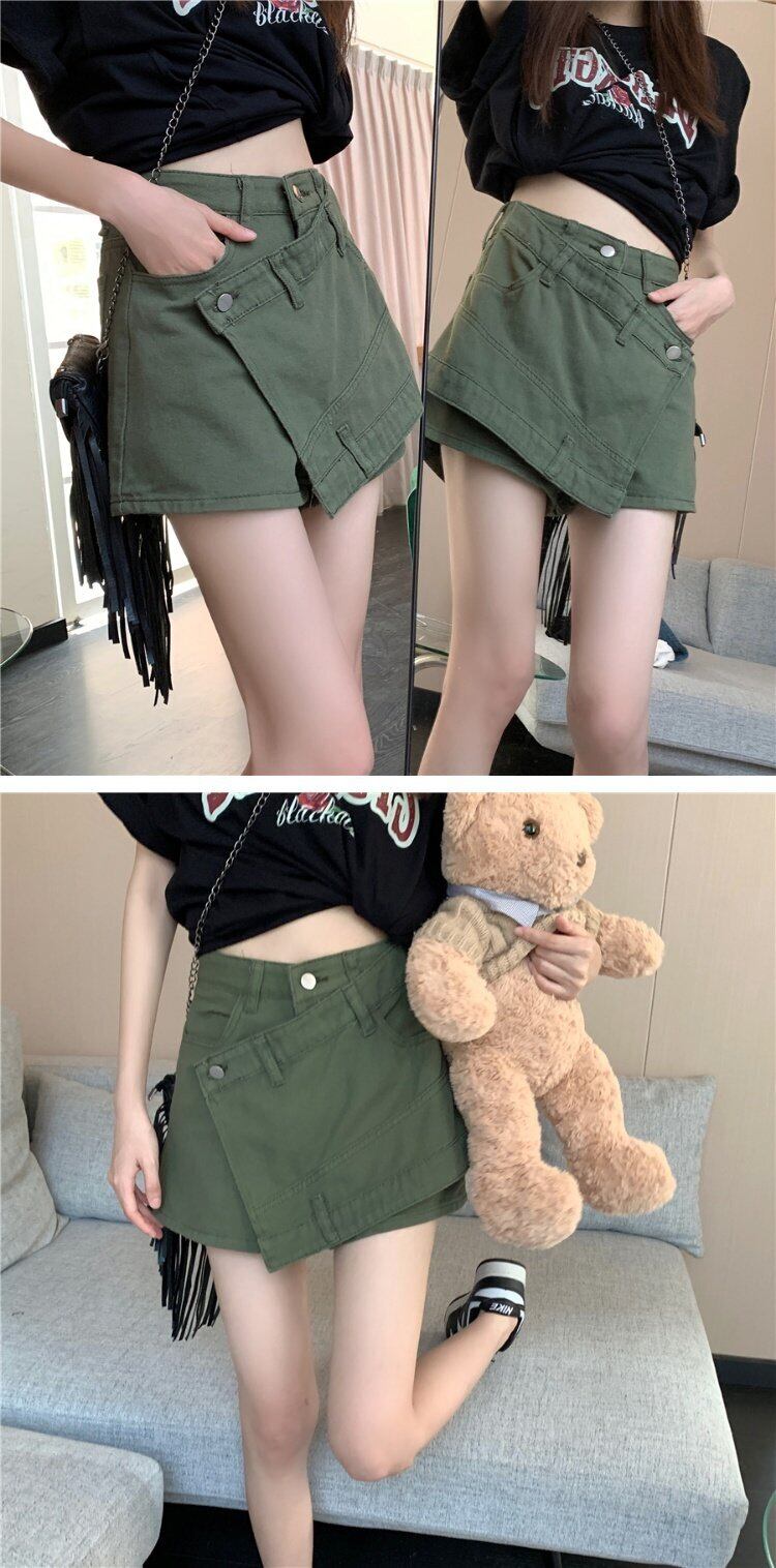 グリーンスカート サマーハイウェストウェスト薄手Aラインショート 夏物 s576143698186006