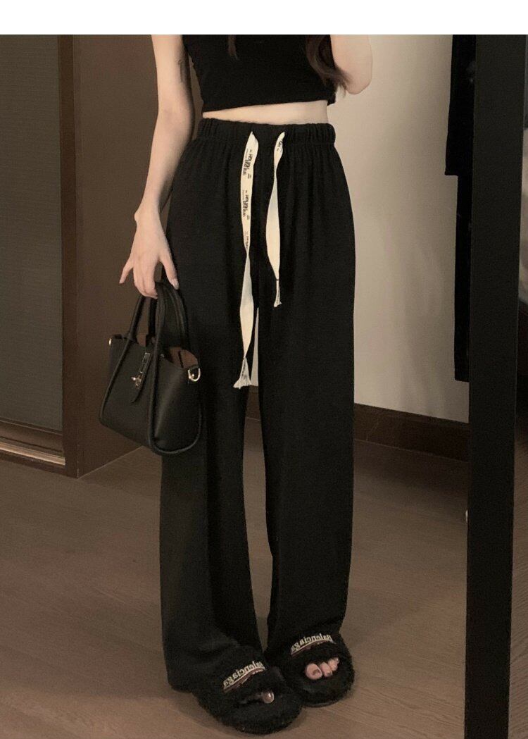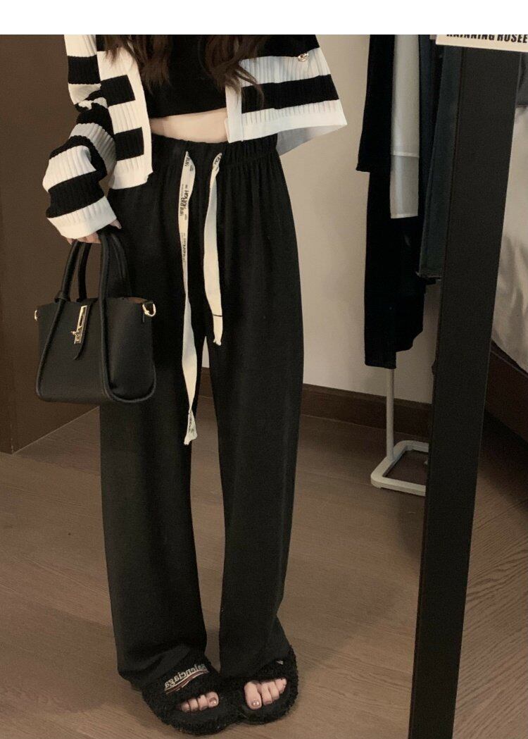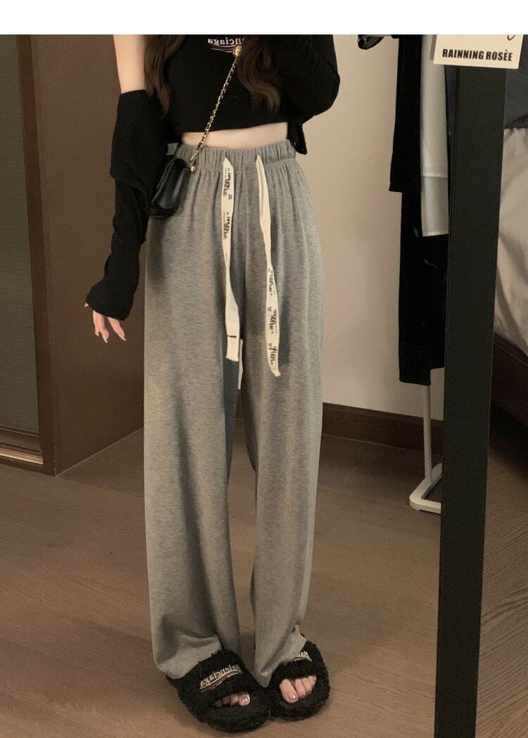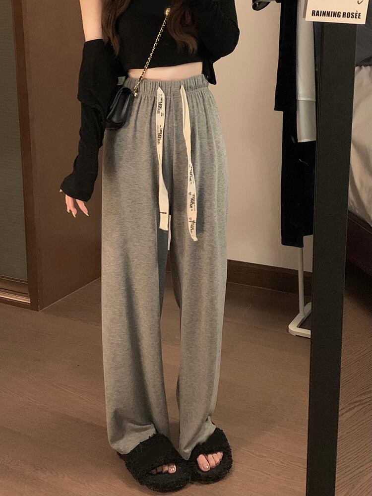 グレーカジュアルパンツ オータムハイウェストウェストルーズワイドレッグ 秋物 ワイドパンツ s576183825381576