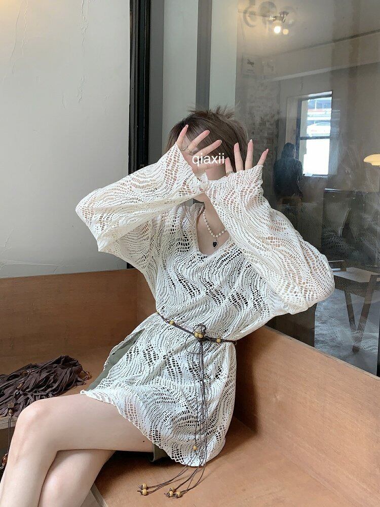 Tシャツ サマー薄手ブラウス ルーズスリットトップス ロング 夏物 s576112732044312