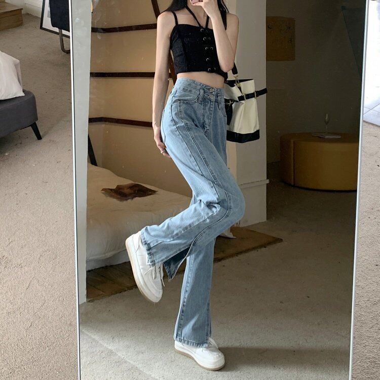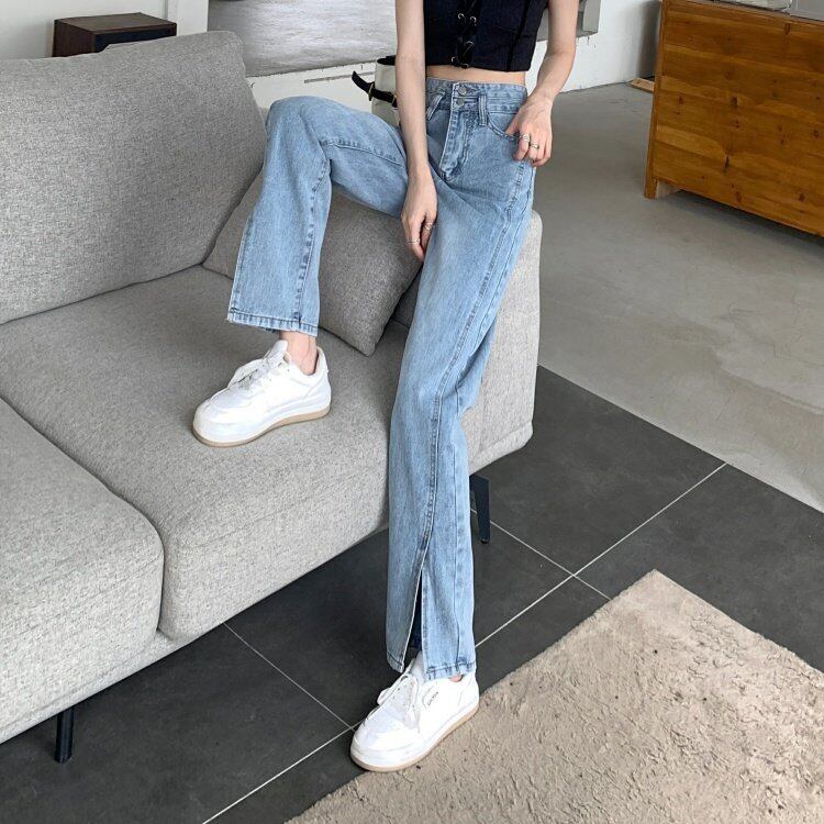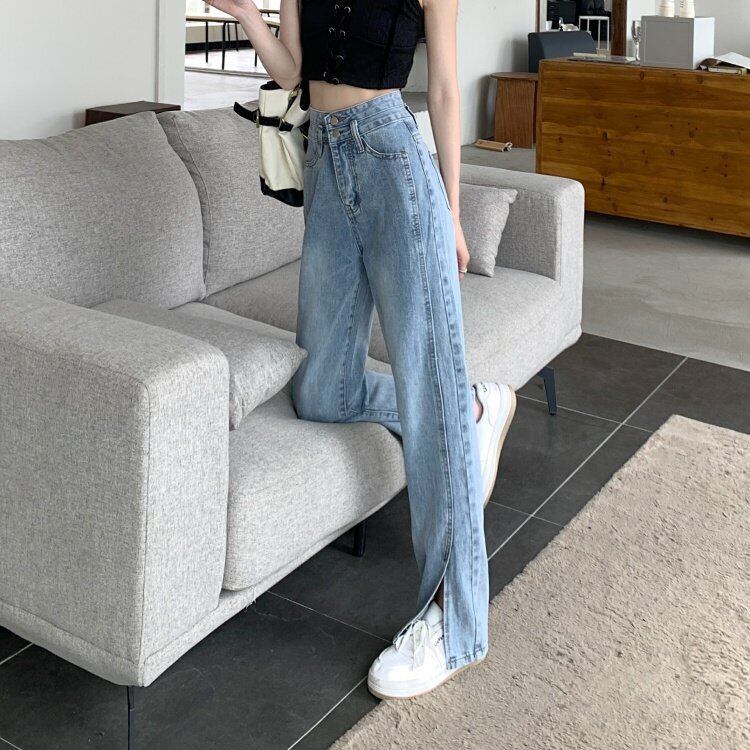スリットジーンズ パンツ サマーハイウェストウェストルーズ 夏物 s576168550531261