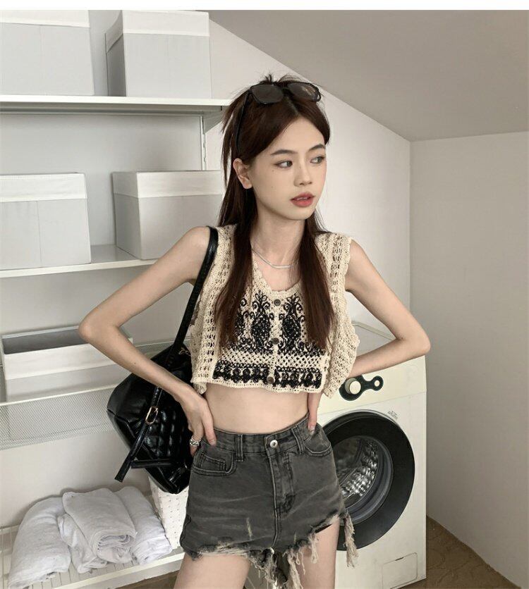 ニットサマーノースリーブショートトップス 夏物 s57614229471724