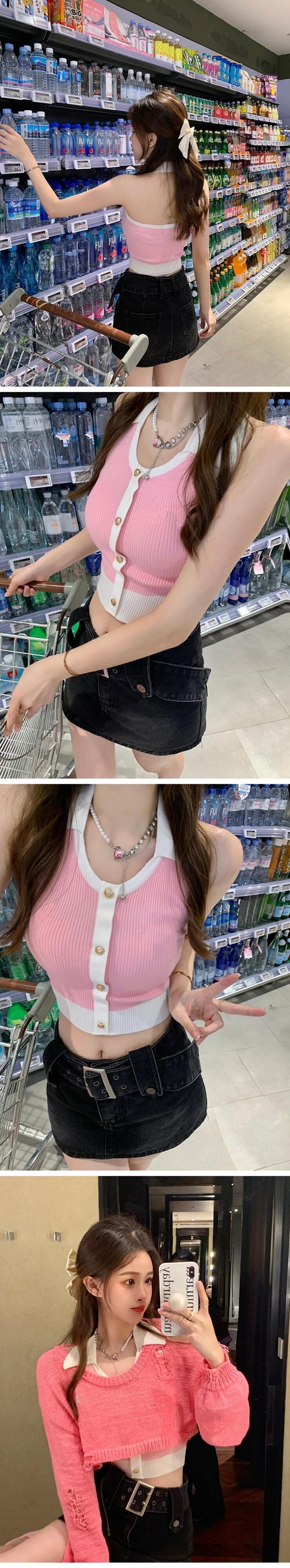 色:ピンクsweater,ブラックSweater,ピンクvest,ブラックvest